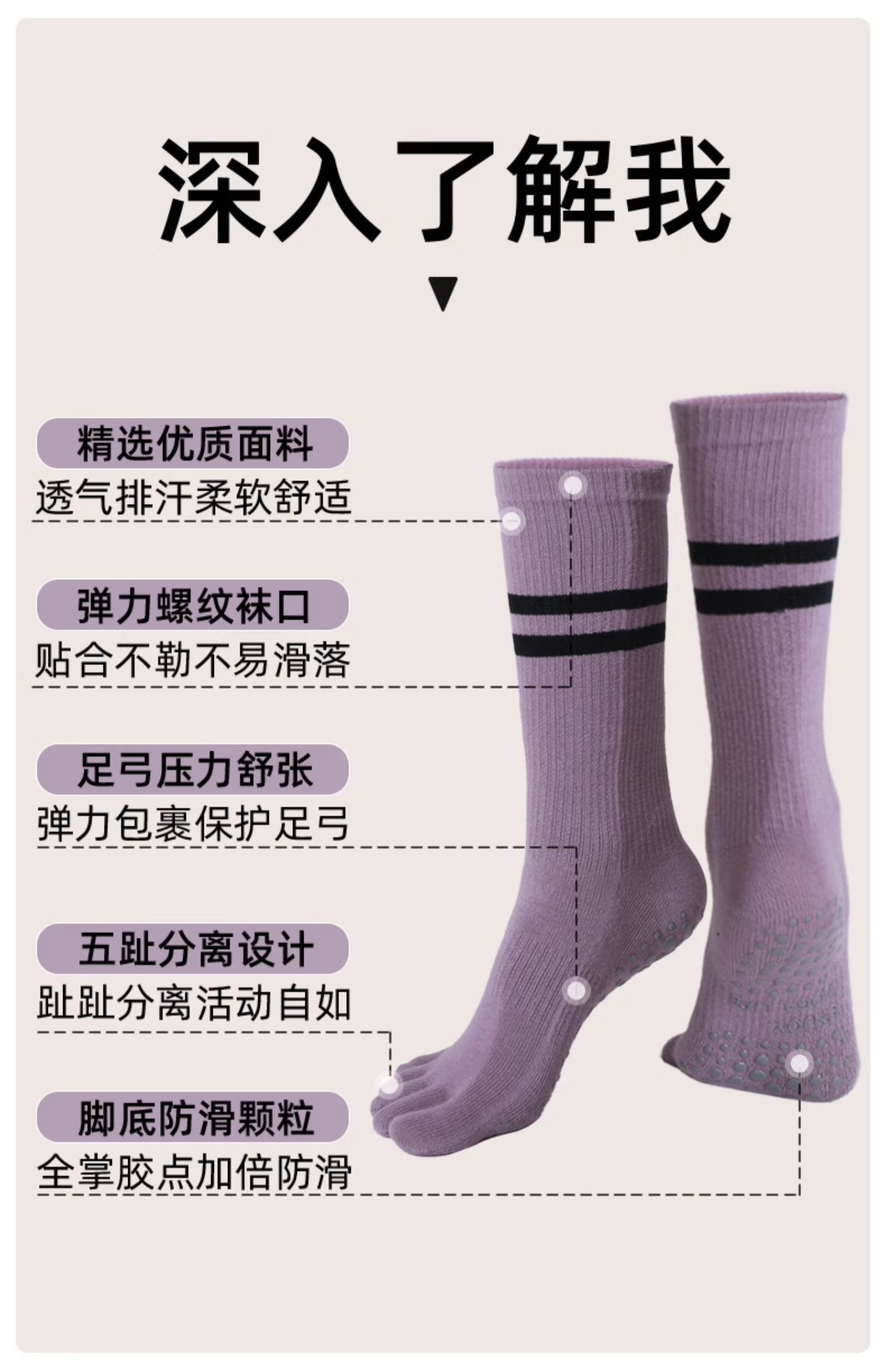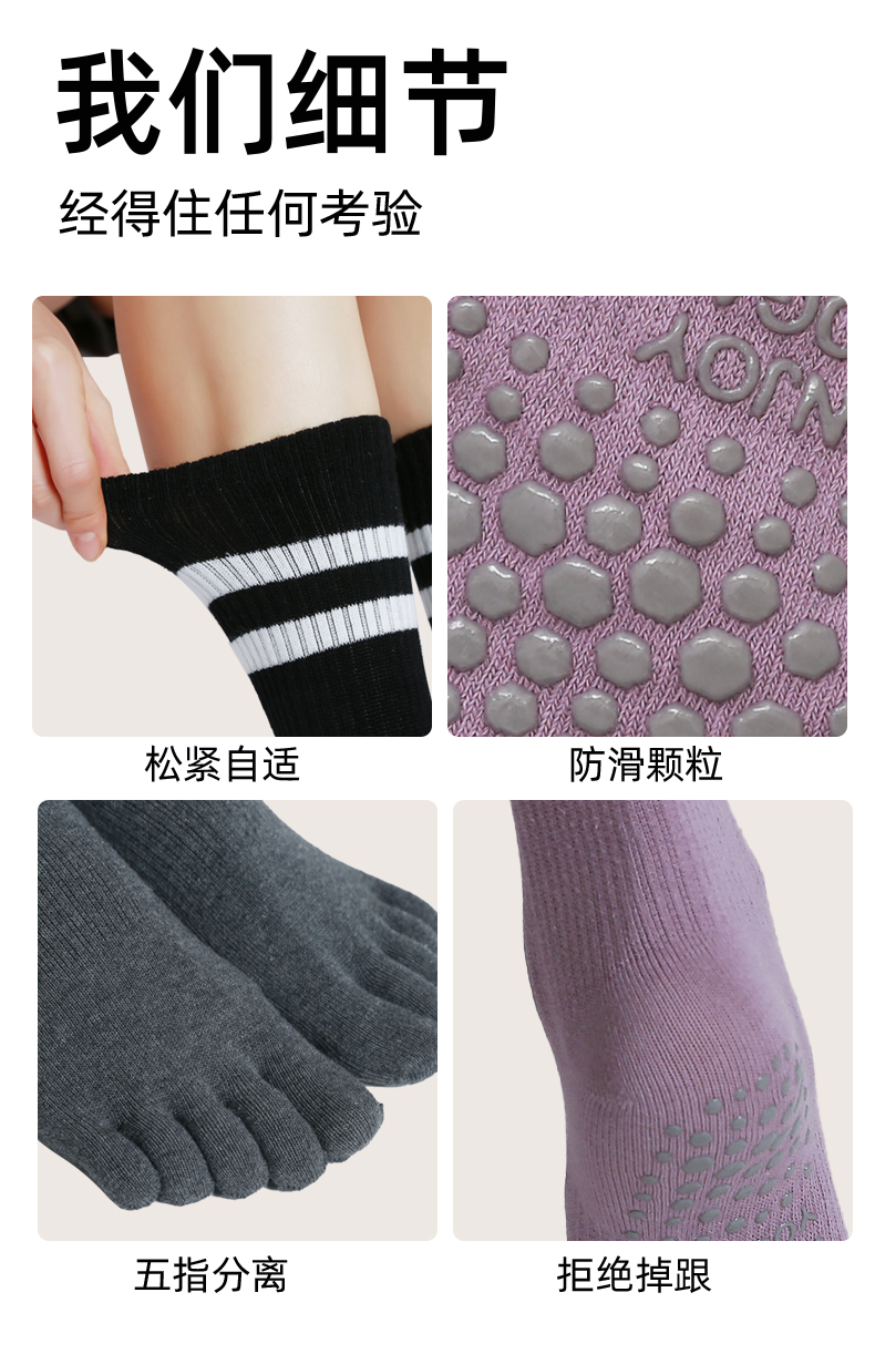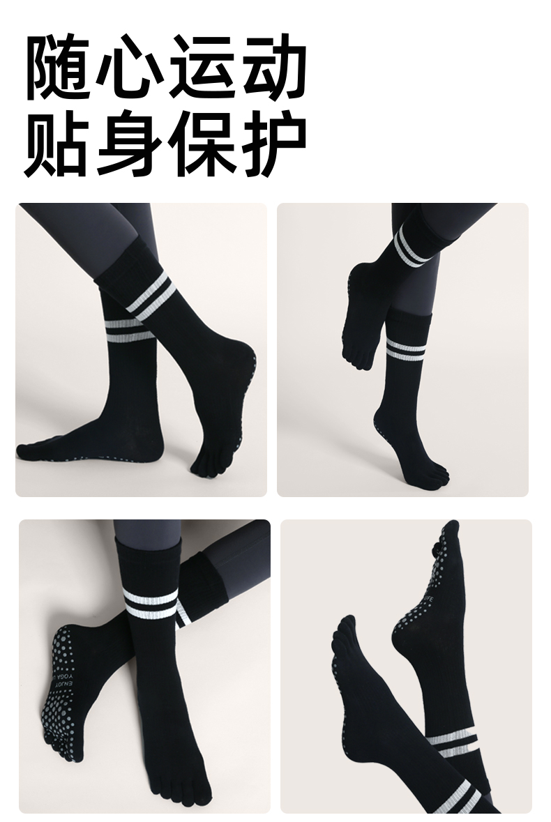 瑜珈襪子中筒普拉提五指專用鞋壓力長筒襪專業防滑女分趾跳繩純棉