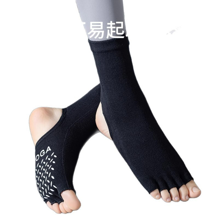 小魚加加露趾露腳跟五指瑜珈襪防滑女襪春夏高筒專業運動中筒襪