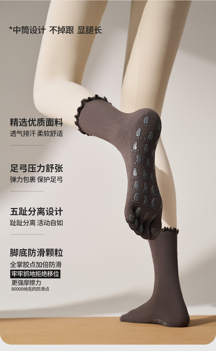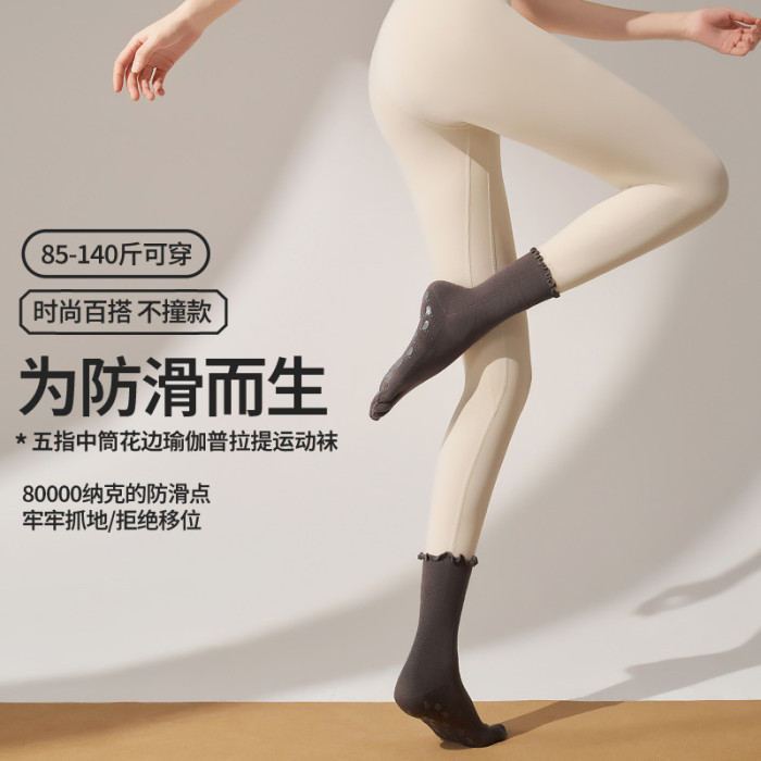 新款潮流專業健身運動五指襪普拉提跳操防摩擦瑜珈襪防滑花邊襪