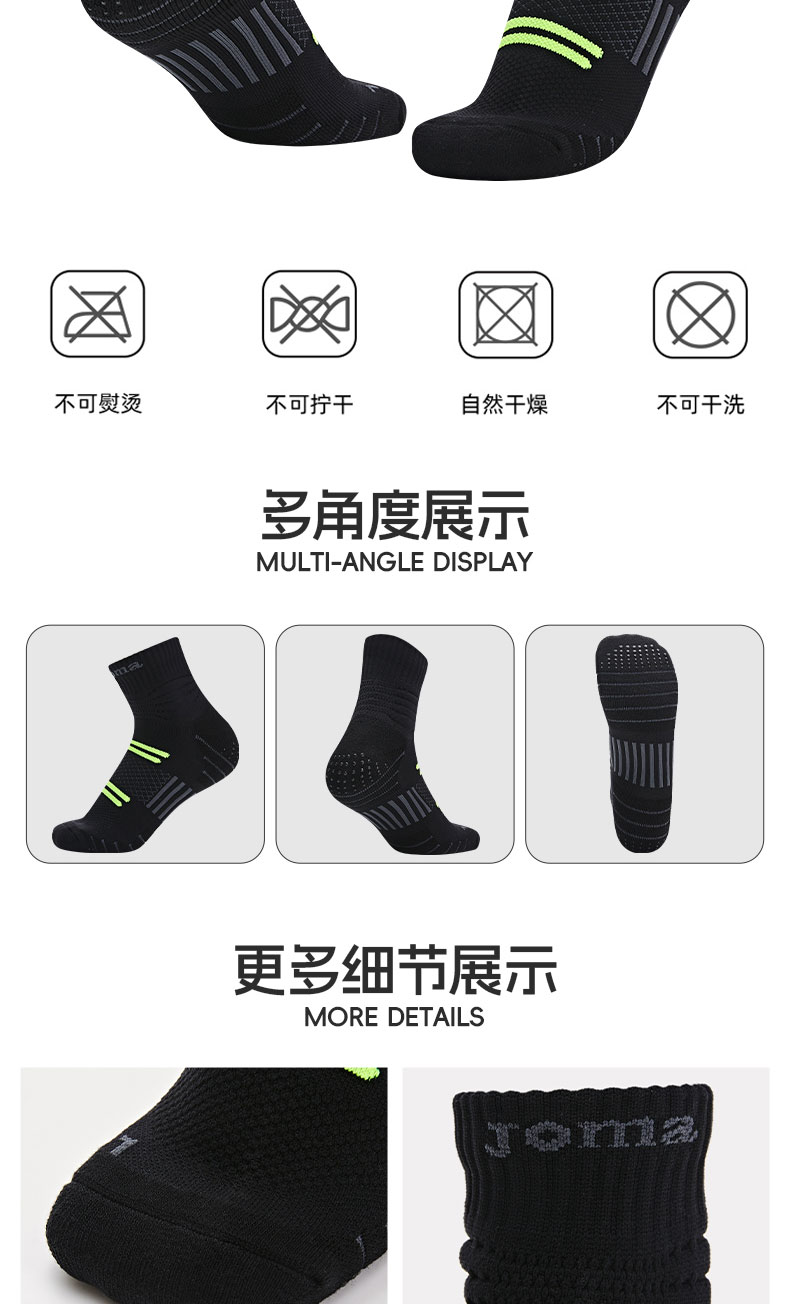 Joma25年新款綜合訓練短襪高彈耐磨透氣網眼防滑矽膠戶外跑步健身