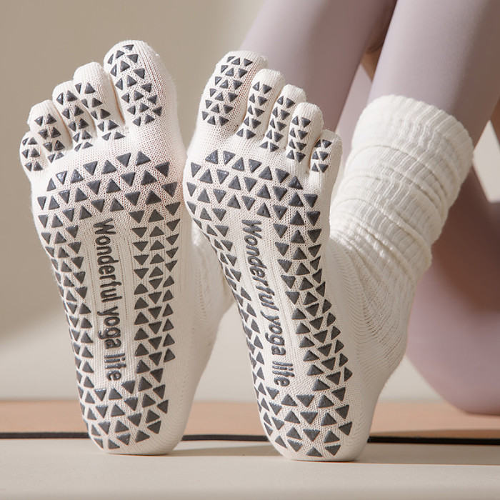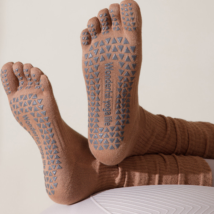 美拉德色瑜珈襪五指長筒襪專業防滑小腿堆堆顯瘦普拉提運動健身襪