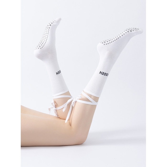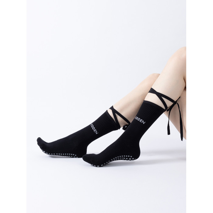 新款瑜珈襪子長筒綁帶運動襪高筒防滑專業地板襪普拉提舞蹈襪女秋