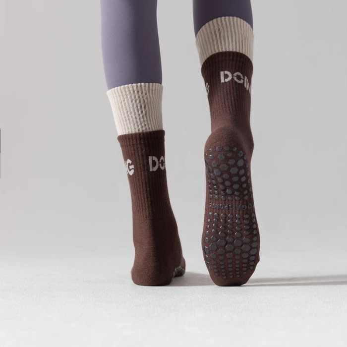 矽膠防滑瑜珈襪子女拼色中筒襪純棉室內健身普拉提高筒運動休閒襪