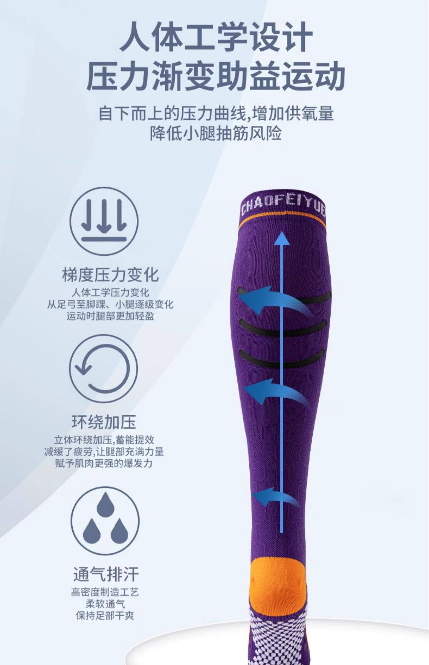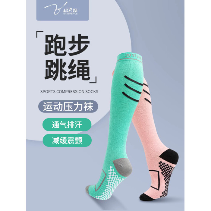 超飛躍跳繩小腿壓力襪瑜珈防滑跑步運動用男女士彈力中長筒不過膝