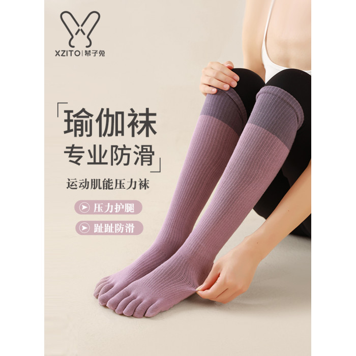 2025五指襪瑜珈襪長筒防滑襪女秋冬專業普拉提襪子室內運動健身襪
