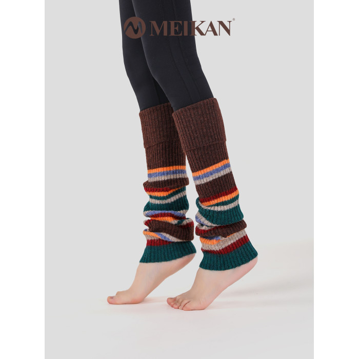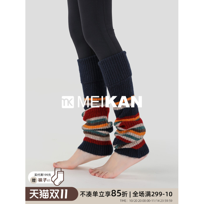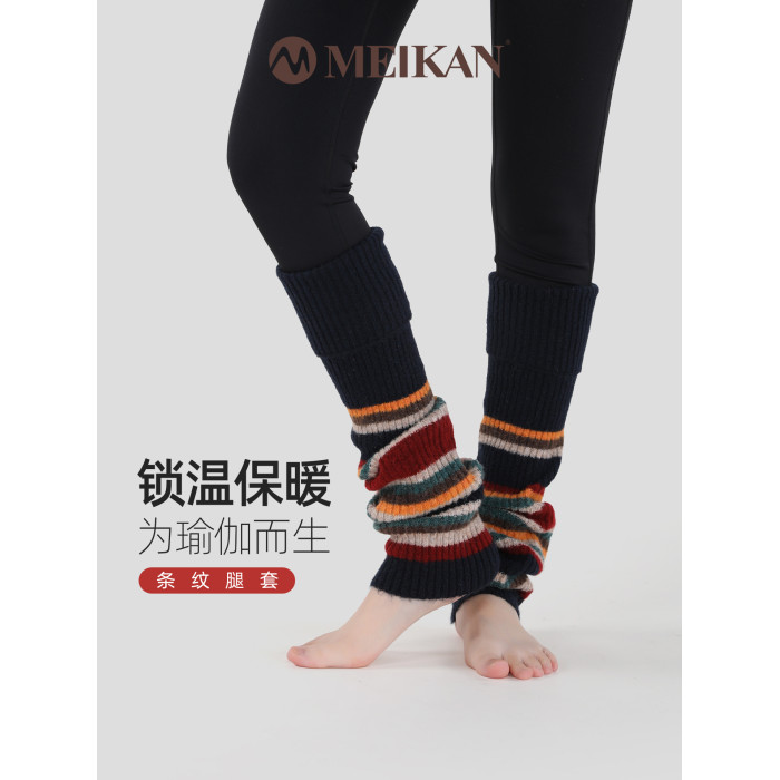 【羊毛】MEIKAN瑜珈襪套撞色條紋襪套針織襪子顯瘦羊毛喇叭腿套