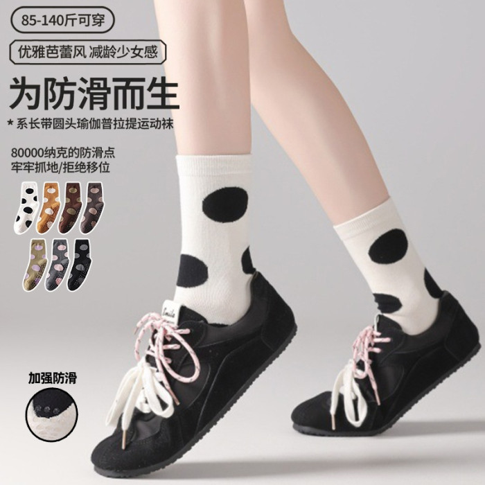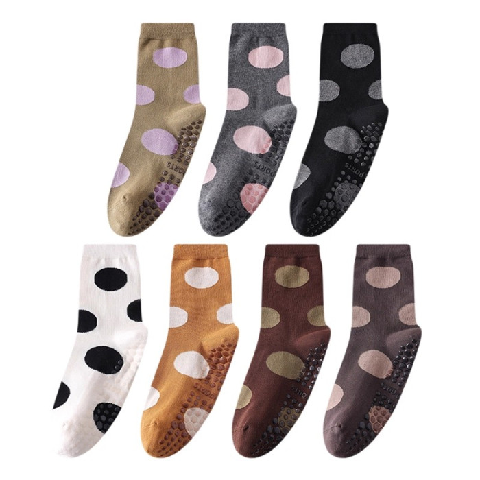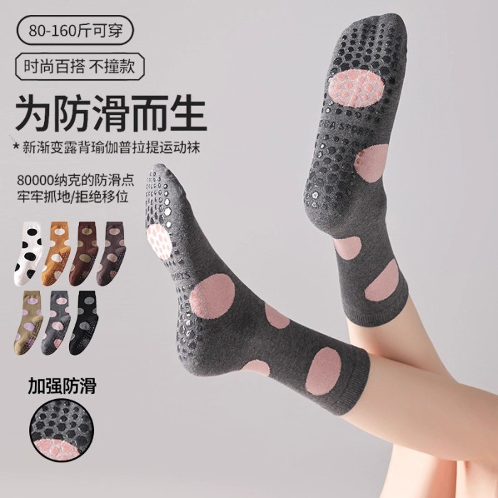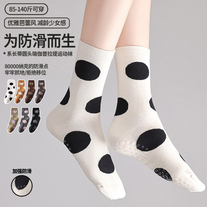 大波點瑜珈襪子防滑專業女中筒健身地板襪成人防滑襪普拉提襪子