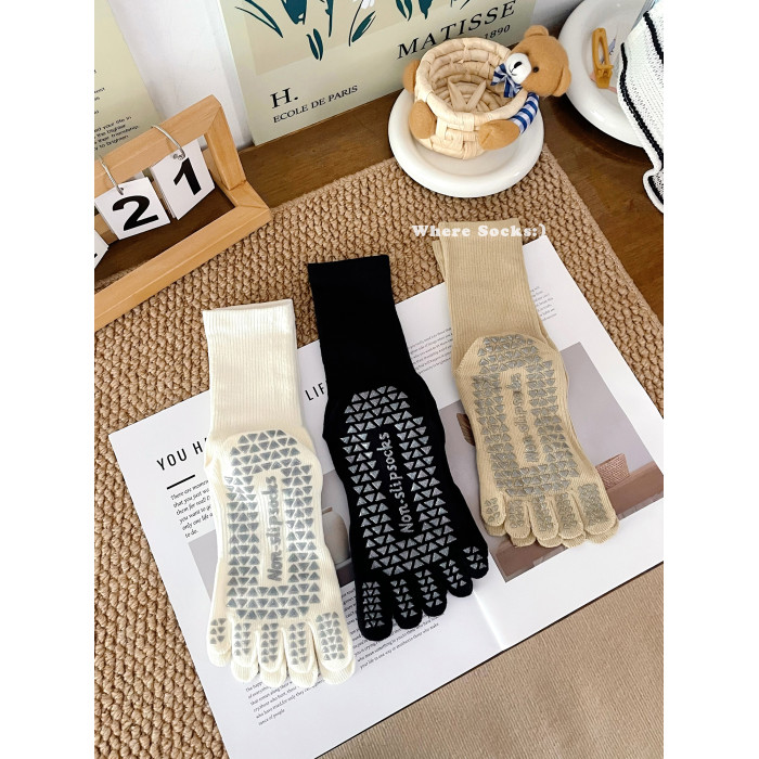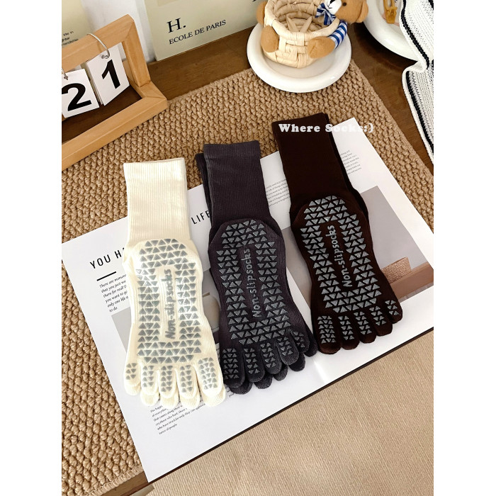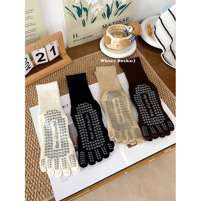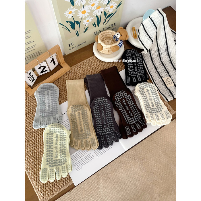 瑜珈襪子防滑專業女普拉提防滑襪秋冬咖系中筒襪五指襪健身運動襪