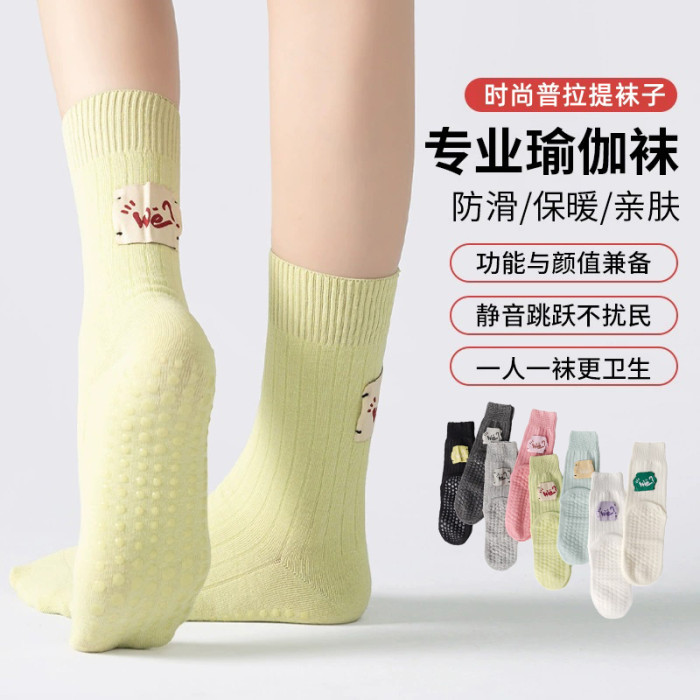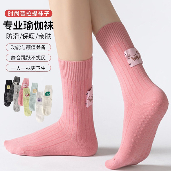 瑜珈襪子防滑專業女中筒室內運動健身防滑襪地板襪成人普拉提襪子