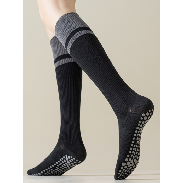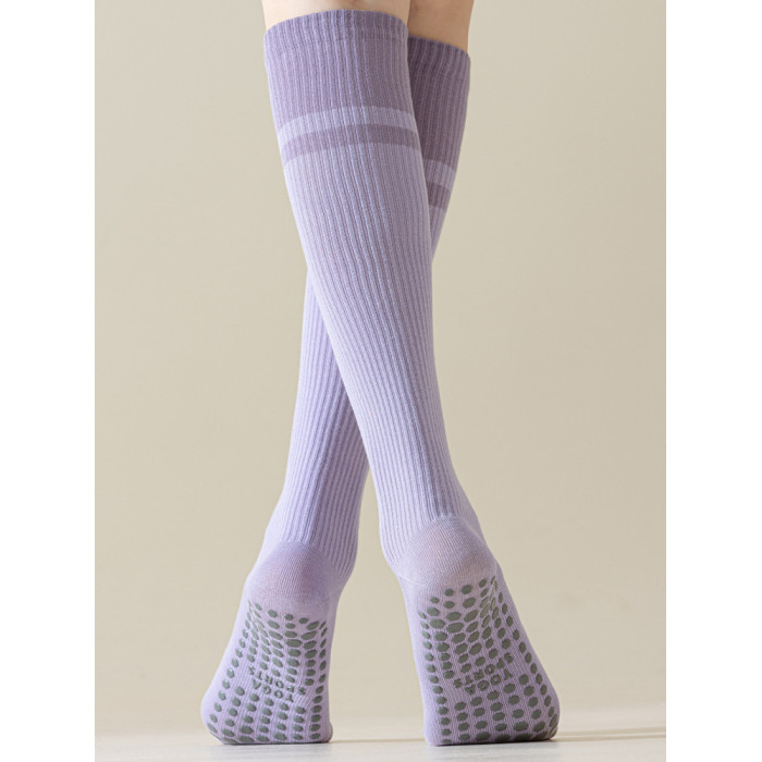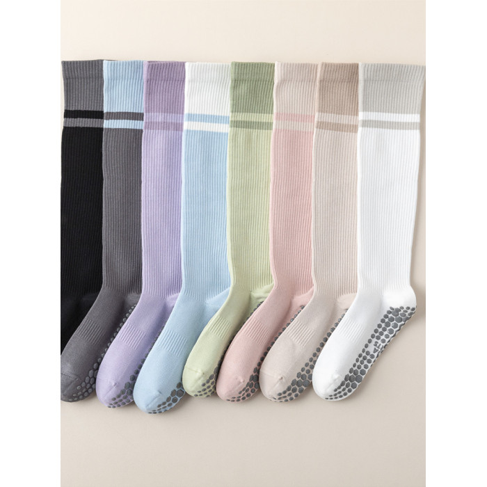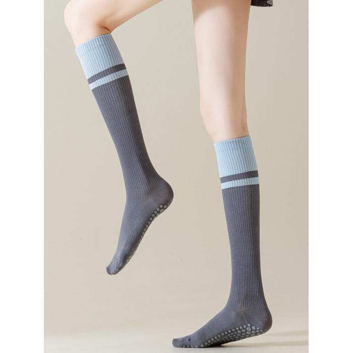 拼色瑜珈小腿襪專業防滑普拉提壓力運動襪子女春秋健身舞蹈長筒襪