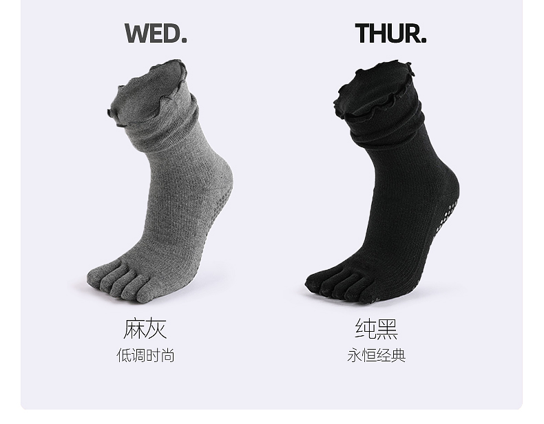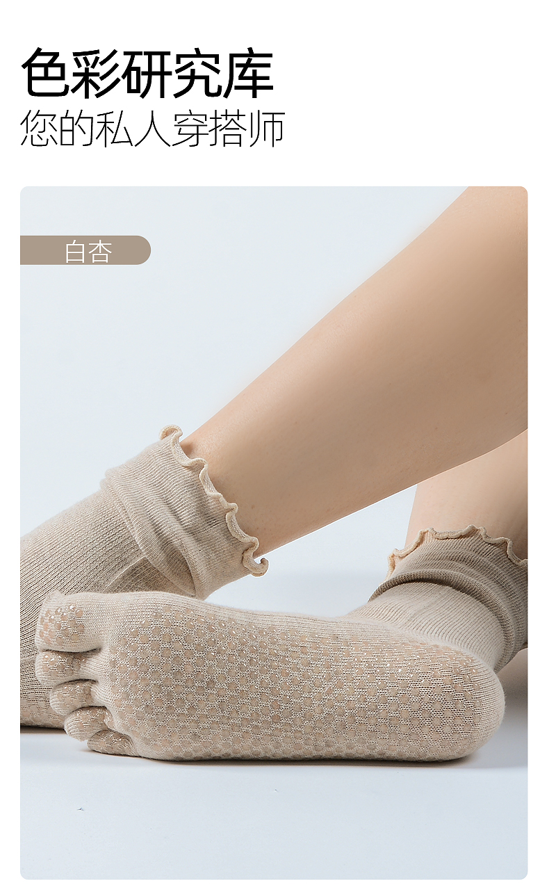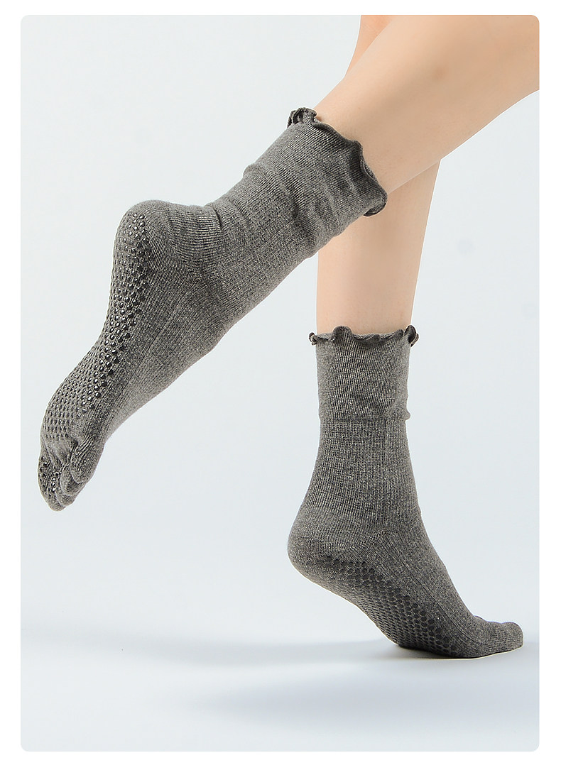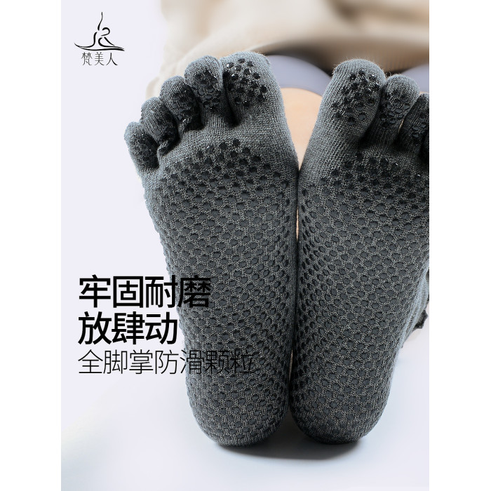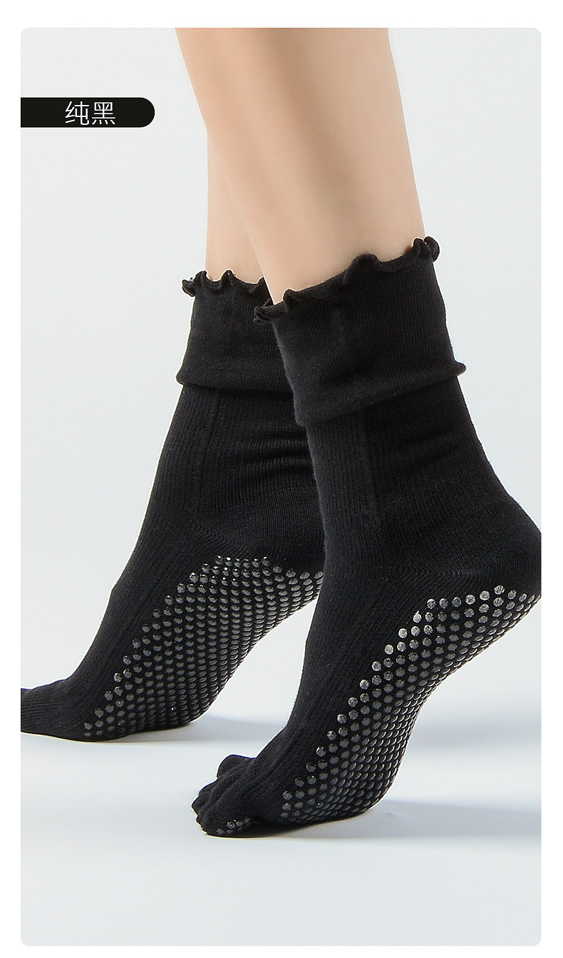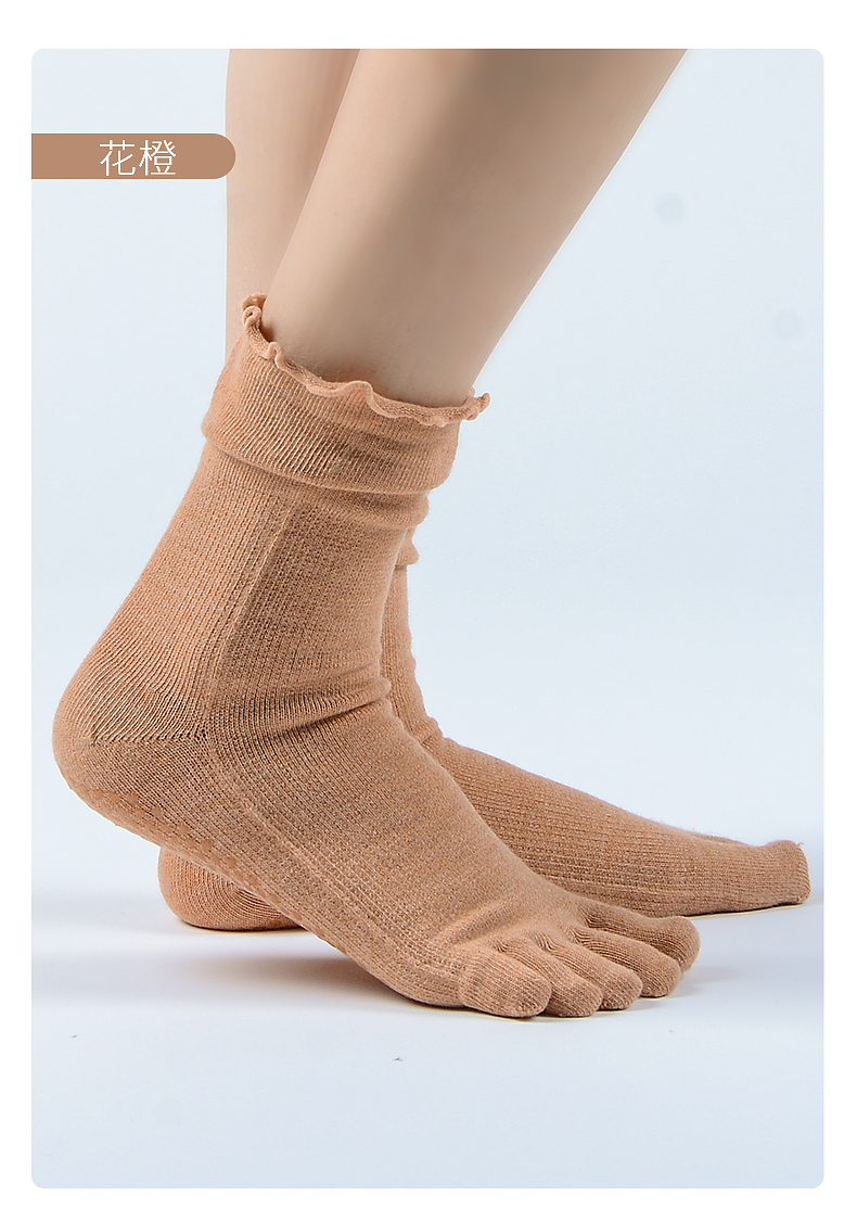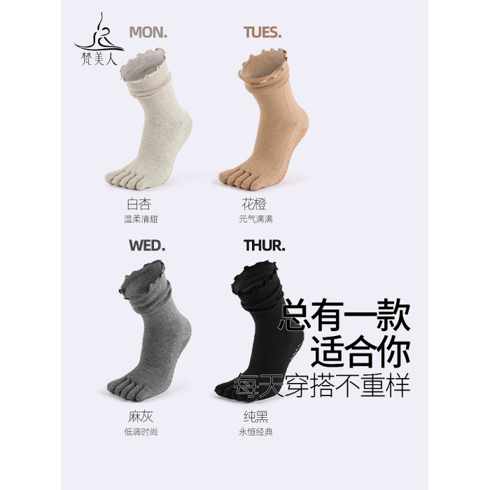 梵美人普拉提襪子五指防滑襪專業秋季中筒花邊室內女士運動瑜珈襪