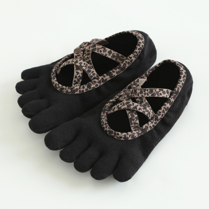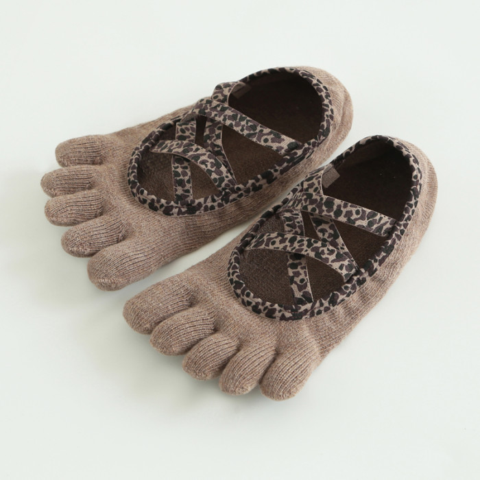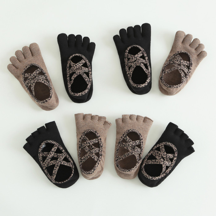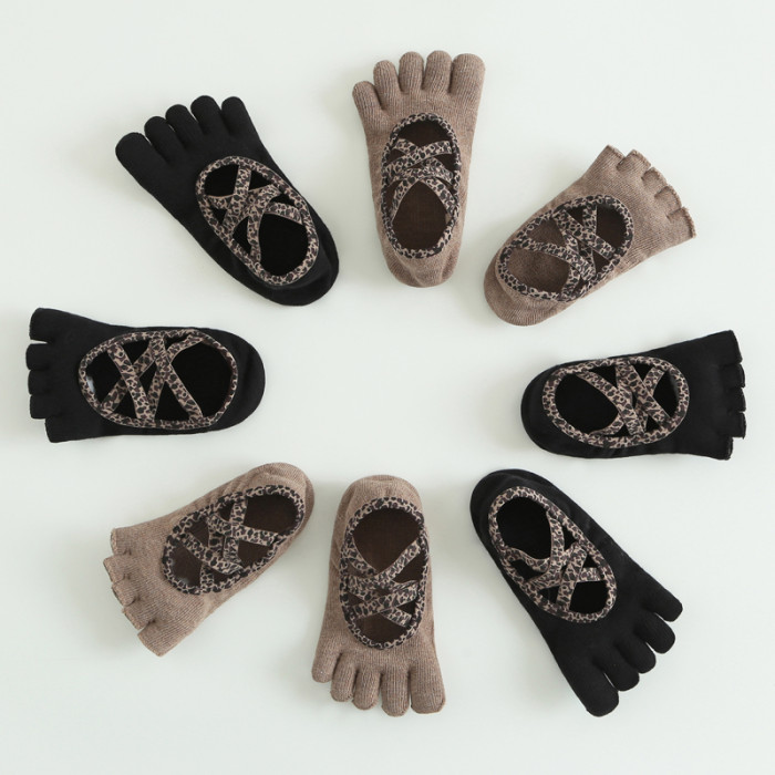 瑜珈襪子專業防滑女五指鞋豹紋普拉提室內運動健身舞蹈分趾地板襪