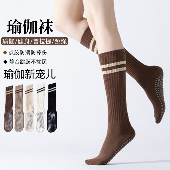 瑜珈襪子防滑專業女長筒室內健身跳操地板襪成人防滑襪普拉提襪子