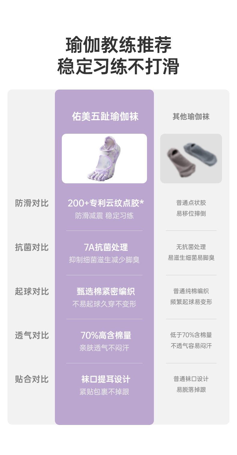 祐美瑜珈襪子防滑專業女普拉提室內運動健身五指襪夏季薄款分趾襪