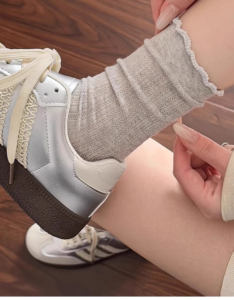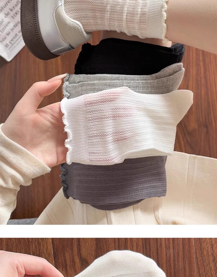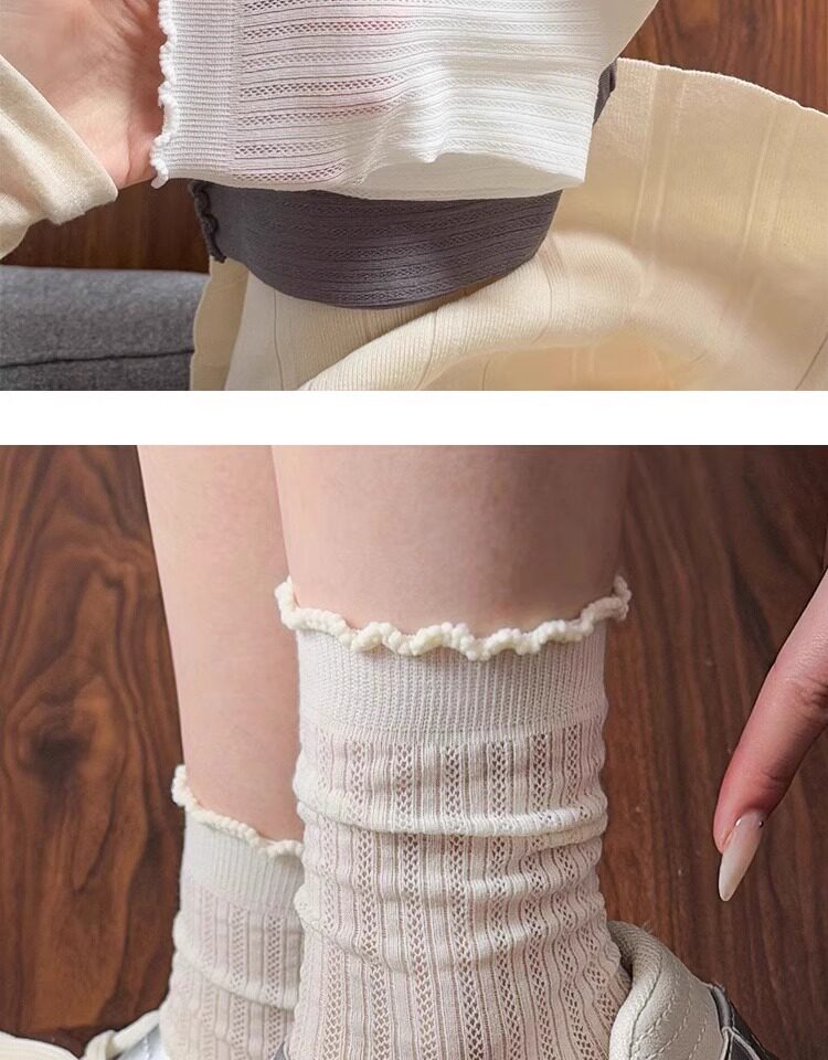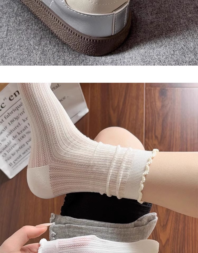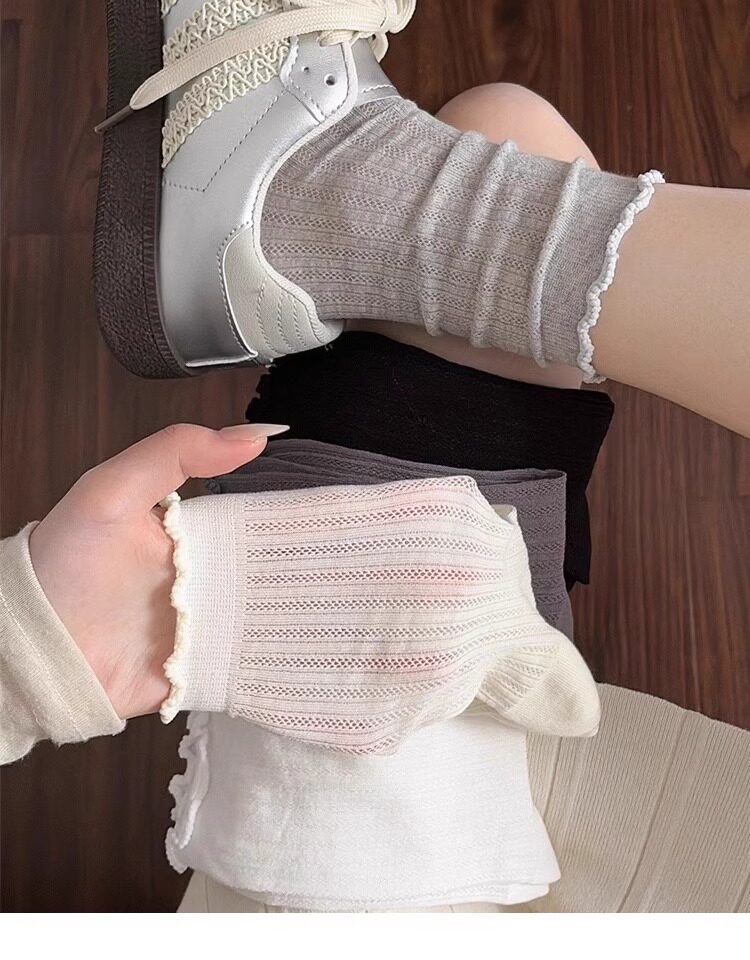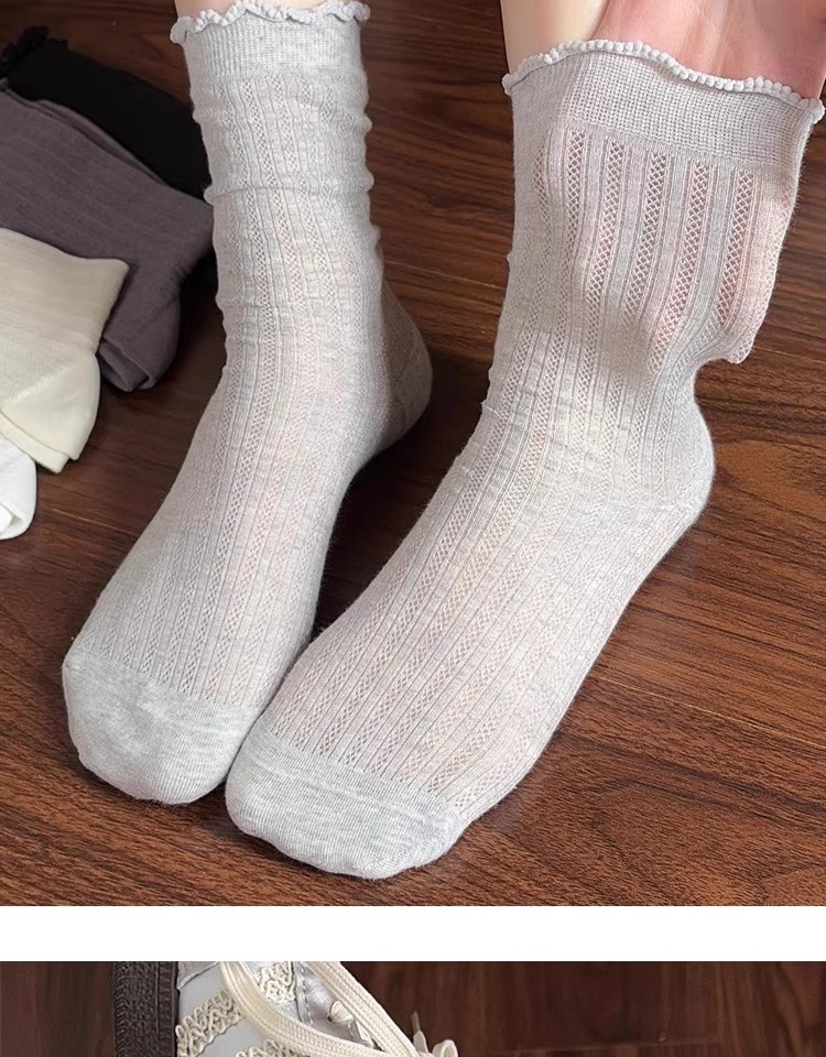 襪子女薄中筒襪ins潮鏤空春秋款長襪日系可愛卡通學生運動堆堆襪