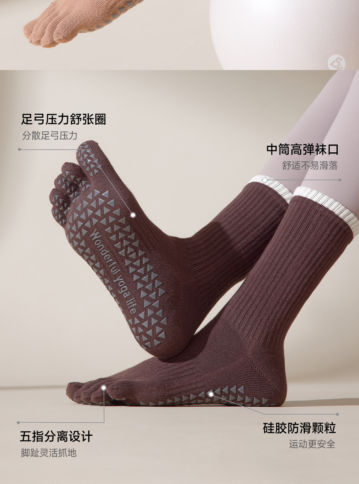 瑜珈襪五指防滑專業女士普拉提襪子運健身動秋冬加厚中筒分趾小腿
