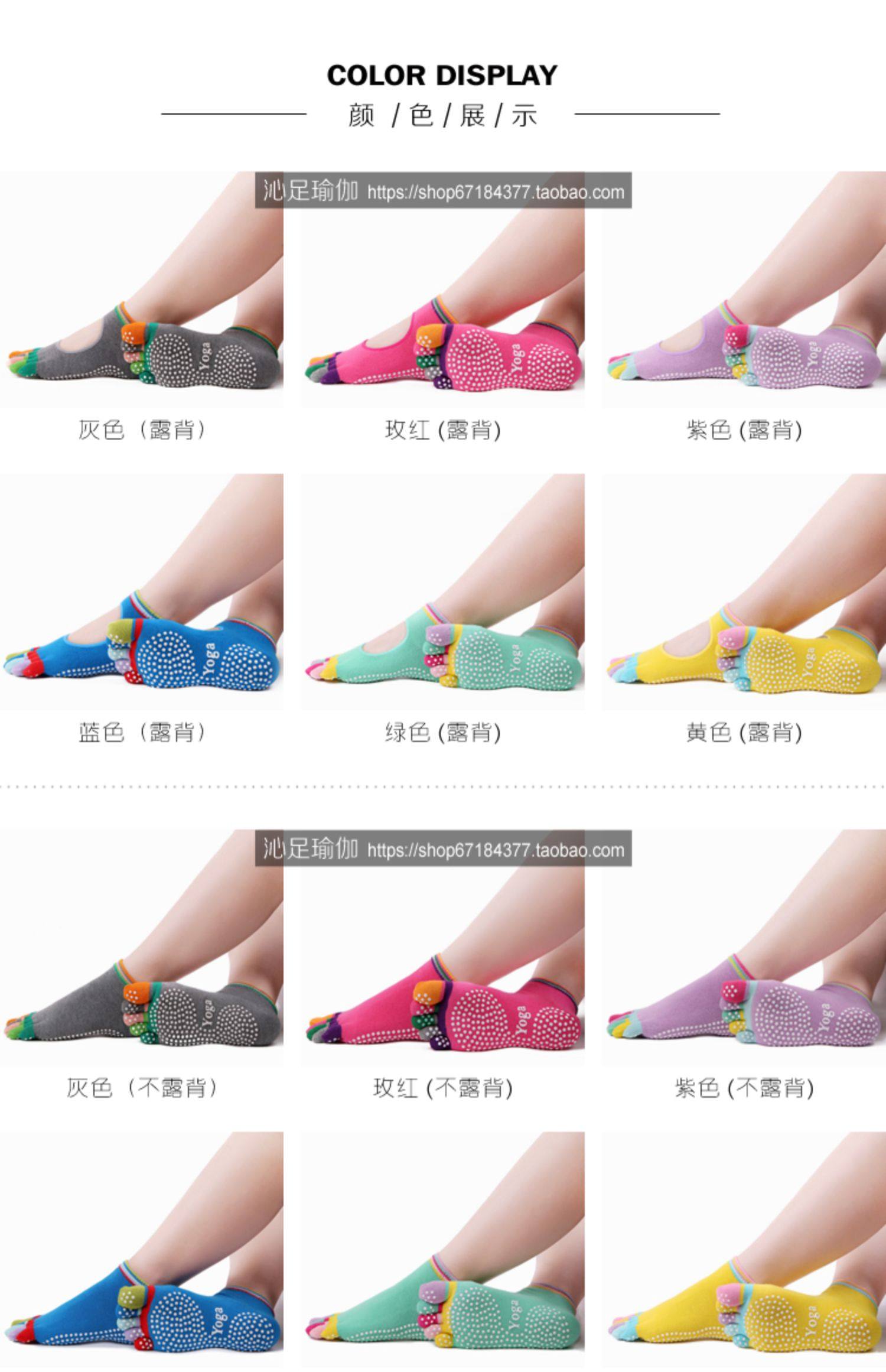 彩色腳趾瑜珈襪子女防滑普拉提專業全棉春初學者大小碼地板五指襪