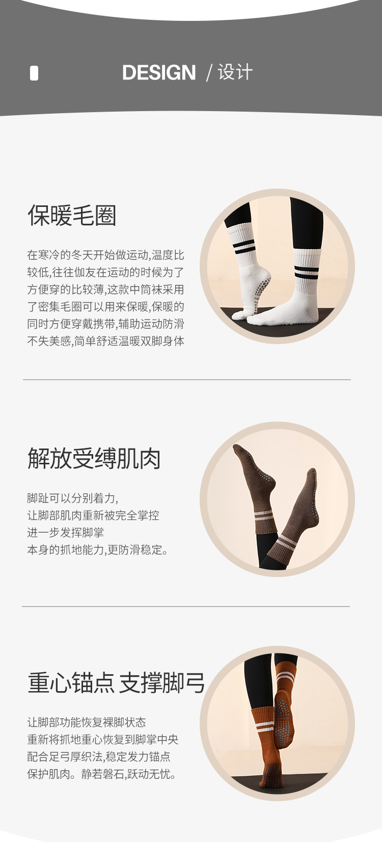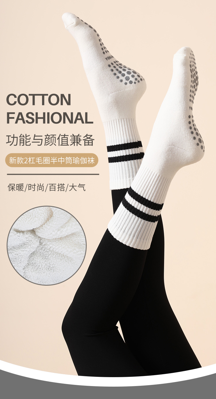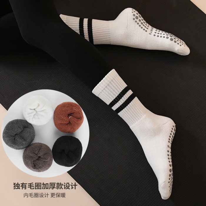 瑜珈襪秋冬防滑加絨加厚長筒中筒五指保暖普拉提初學者專業女室內