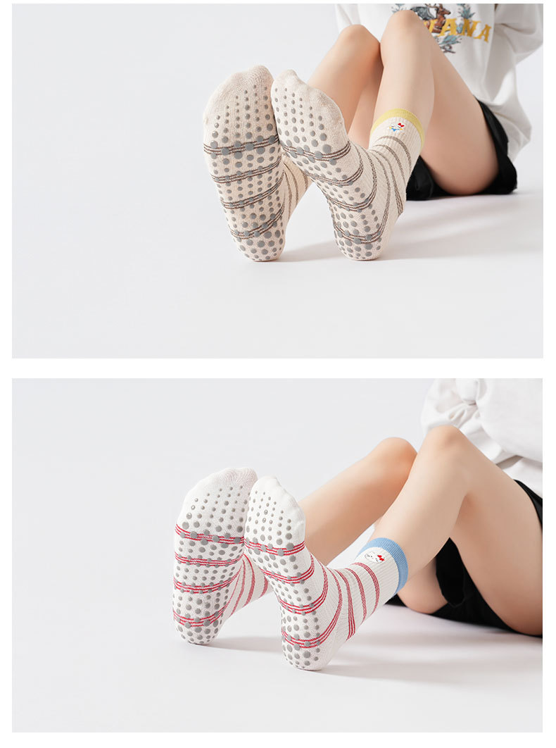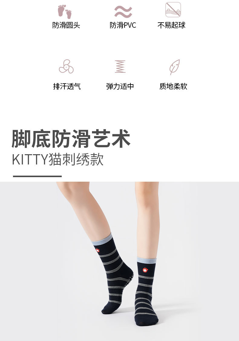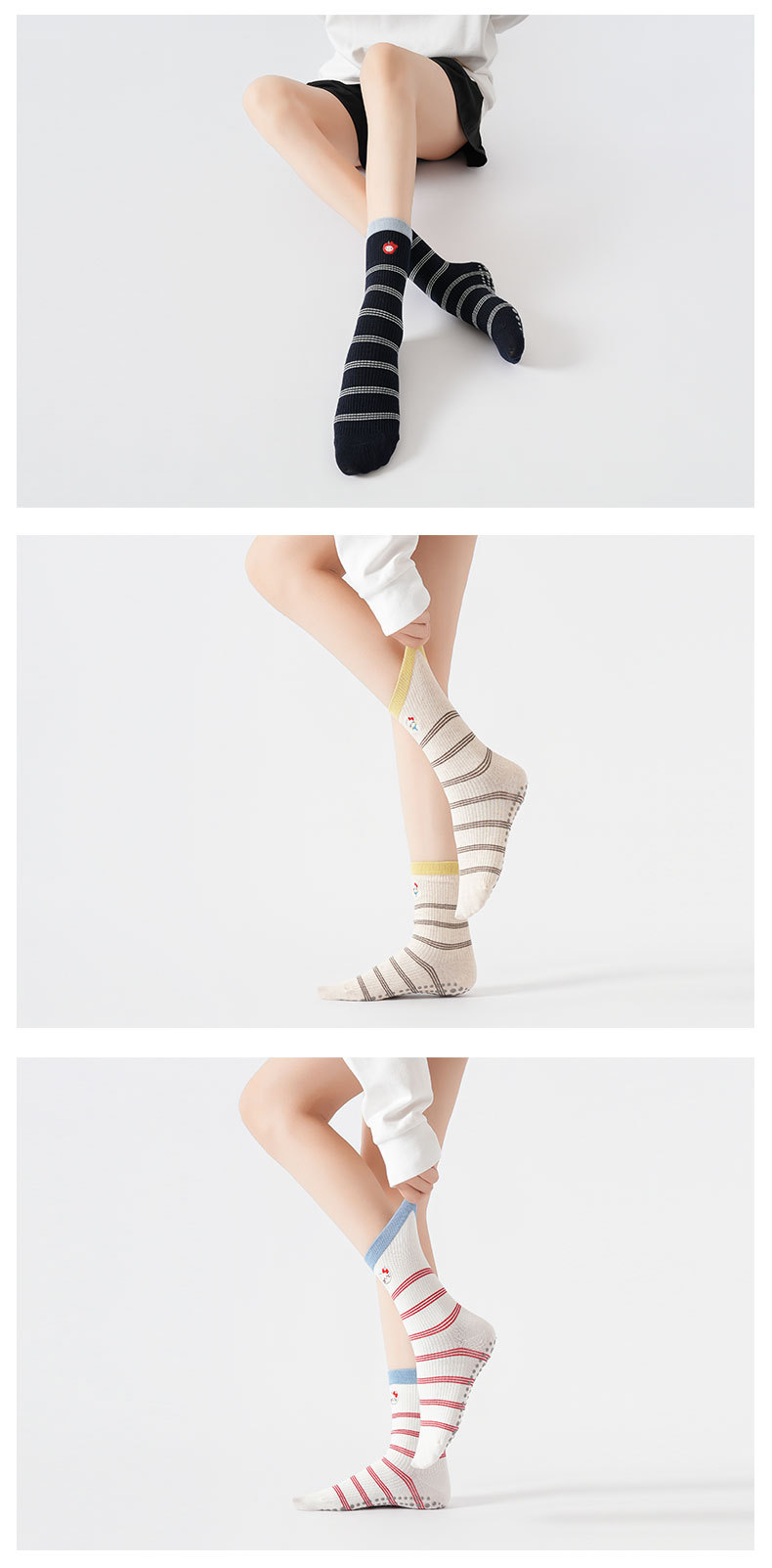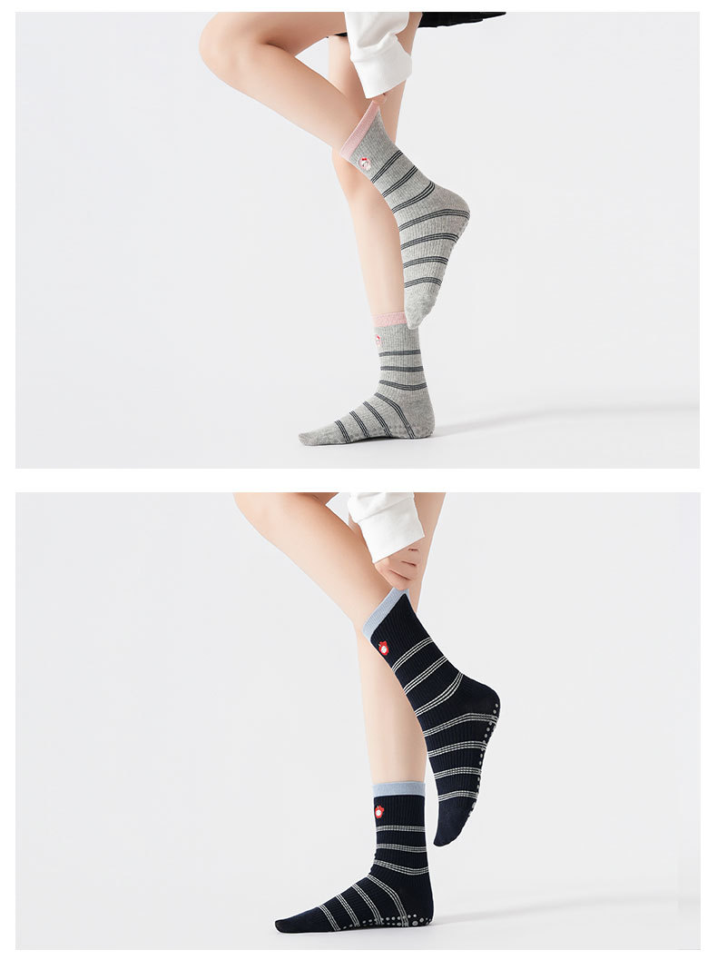 XY0863花色折釦卡通Kitty貓刺綉條紋瑜珈襪防滑普拉提日系地板襪