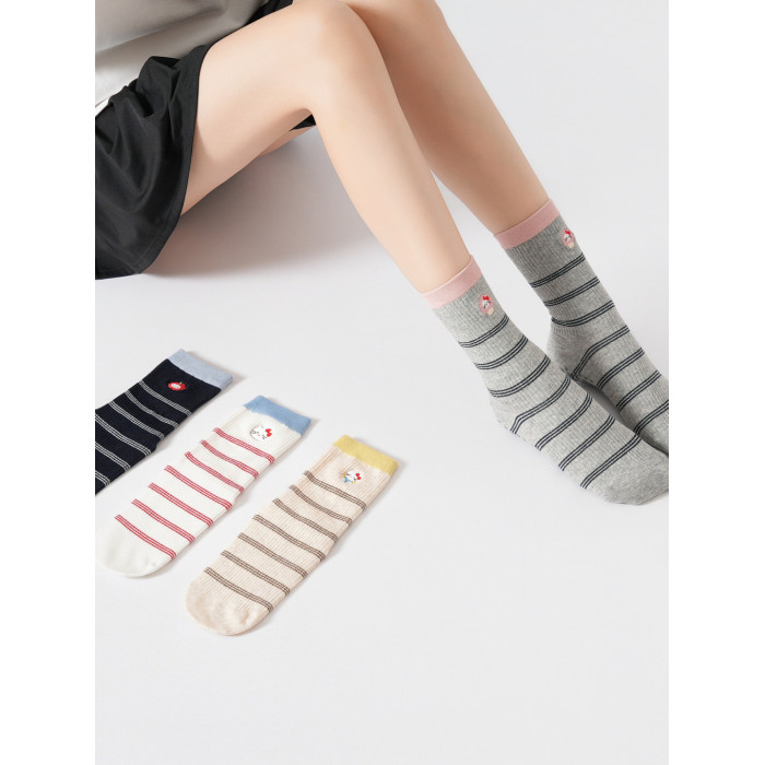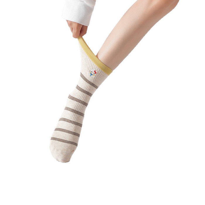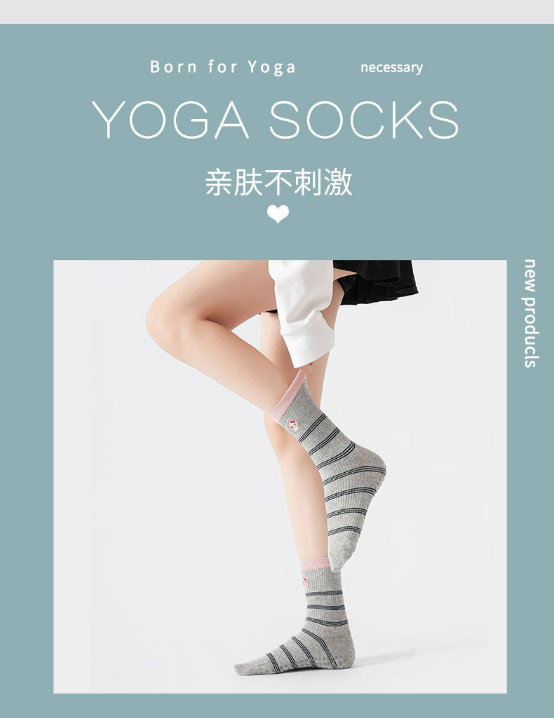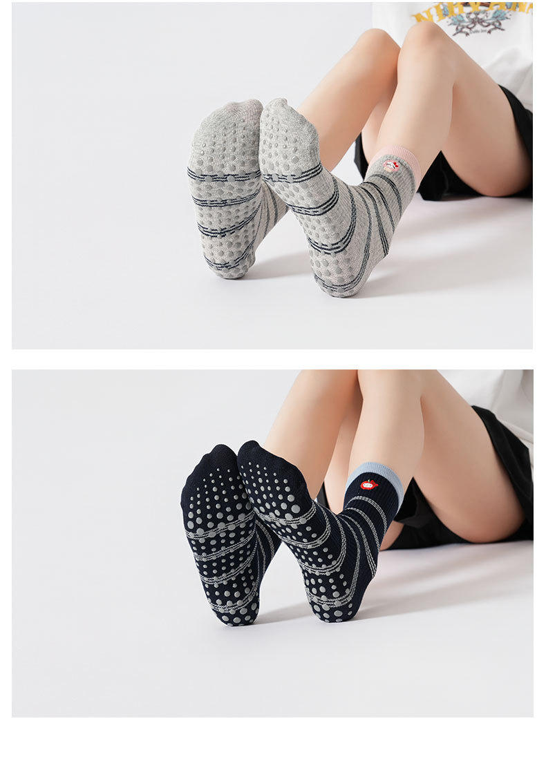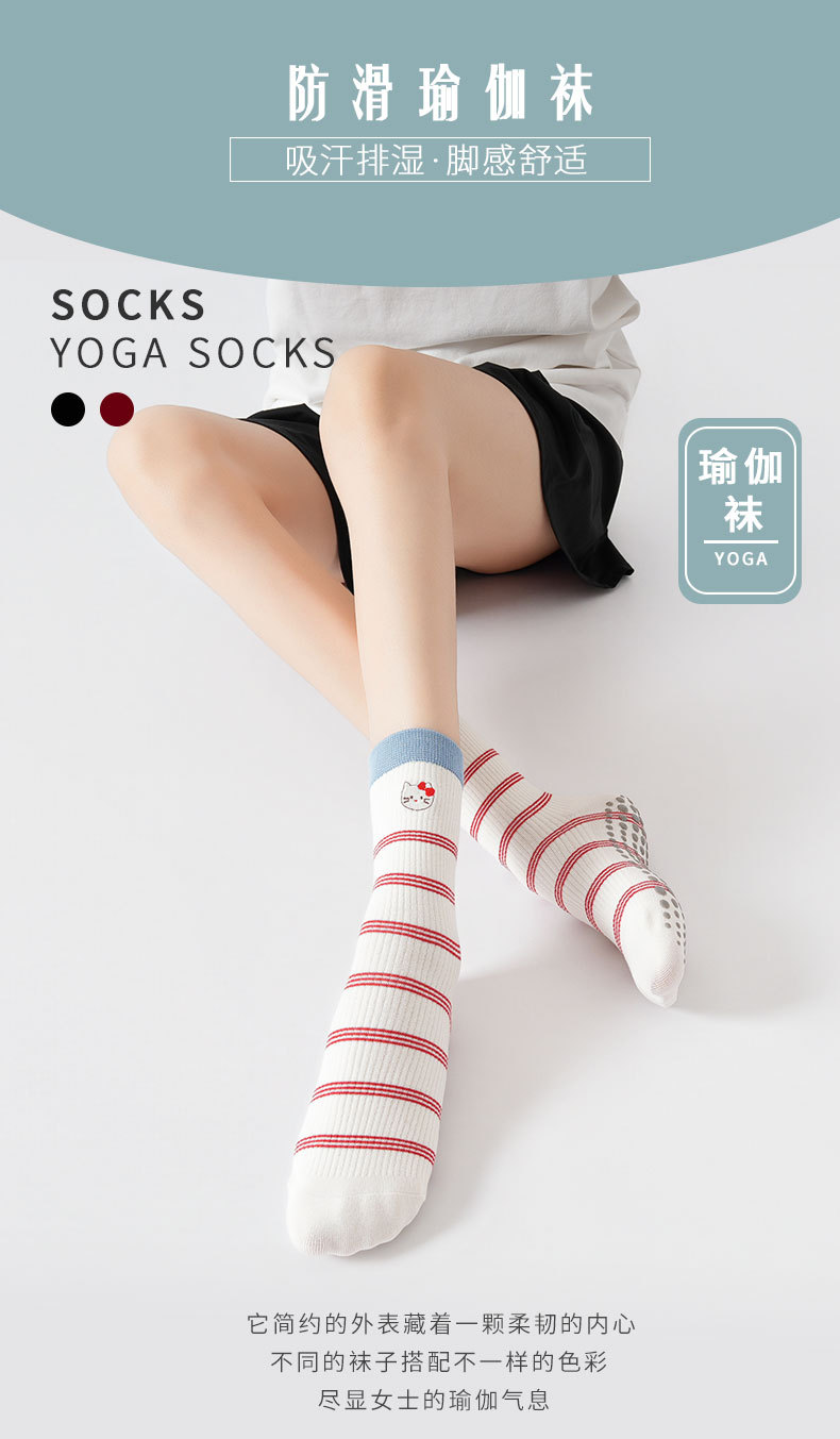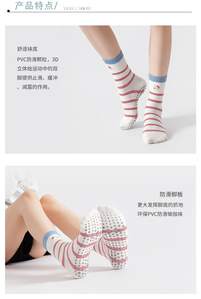 XY0863花色折釦卡通Kitty貓刺綉條紋瑜珈襪防滑普拉提日系地板襪