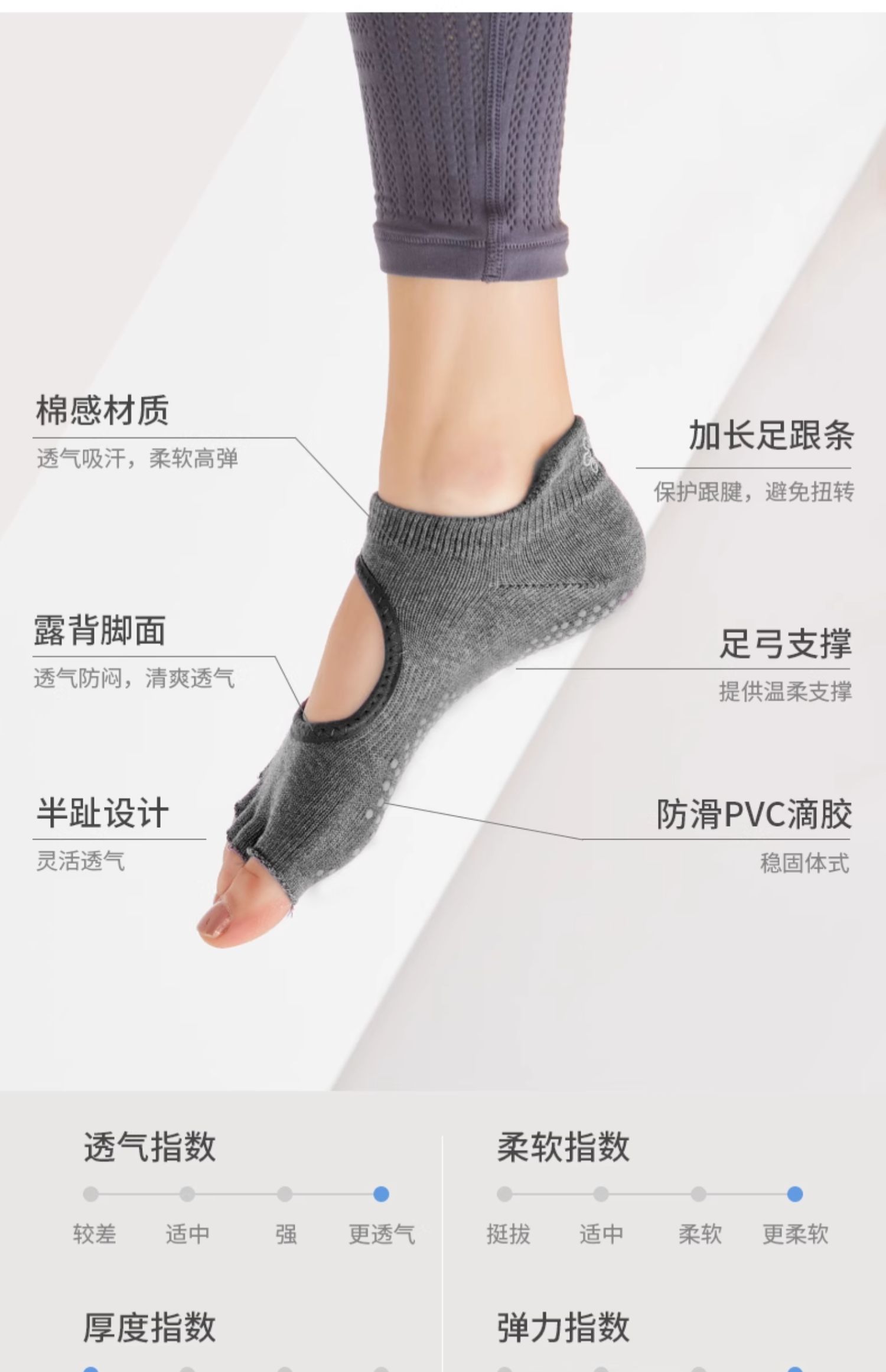 凡聖瑜珈防滑露趾五指襪瑜珈襪透氣室內地板襪運動健身襪子FW004