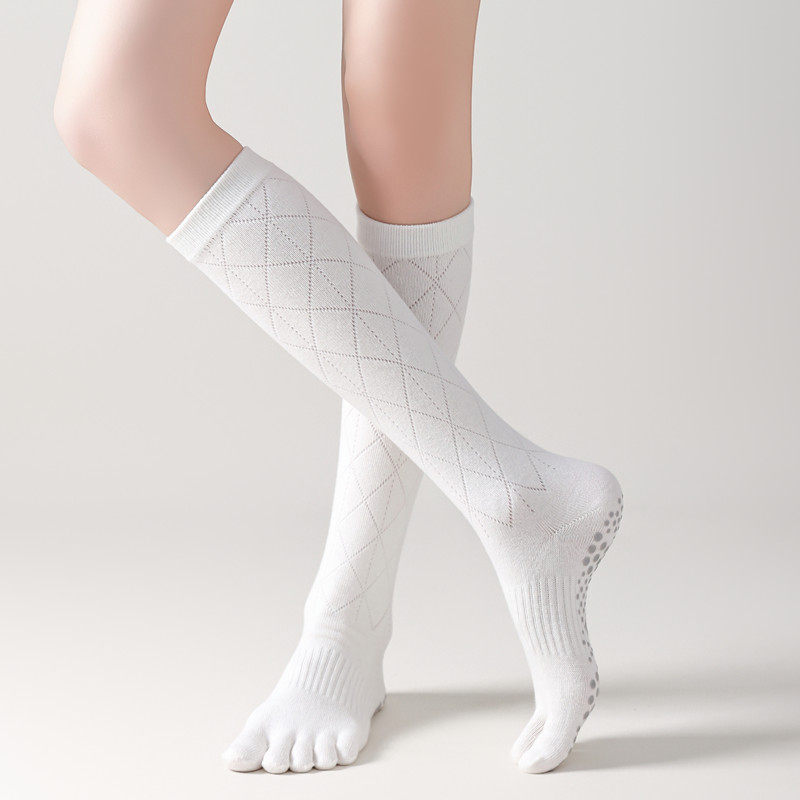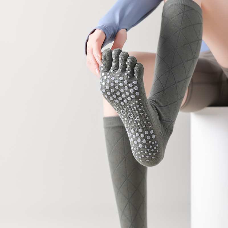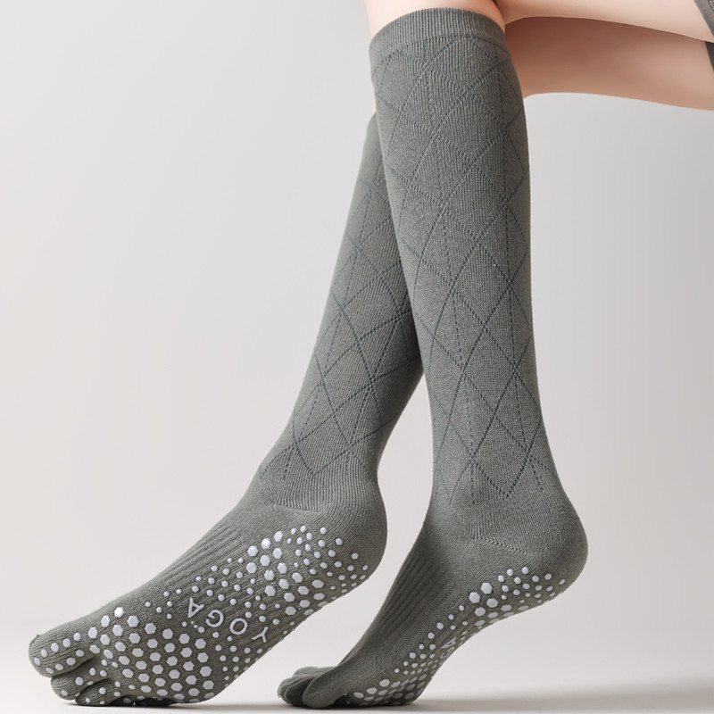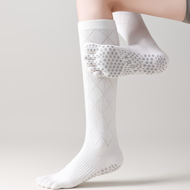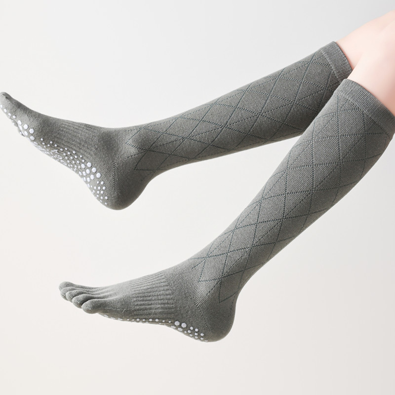 長筒五指瑜珈襪子專業防滑普拉提壓力小腿襪女薄款分趾運動地板襪