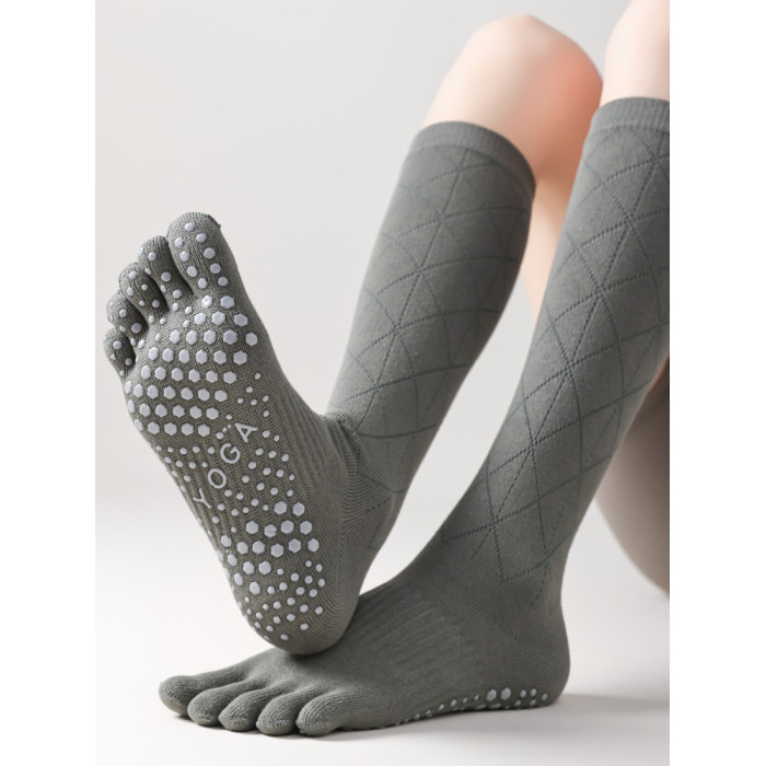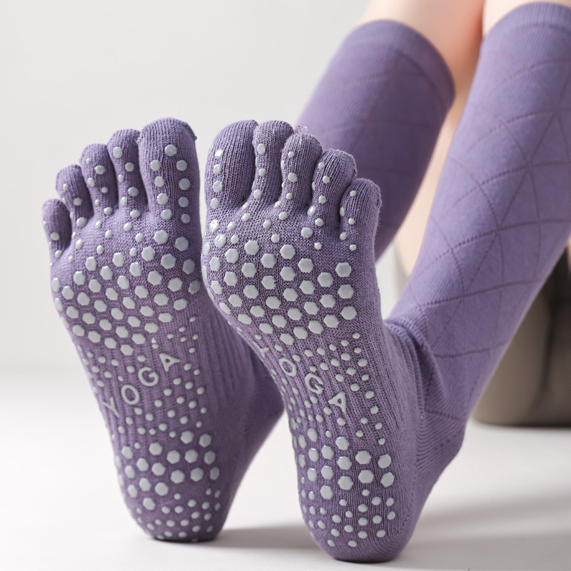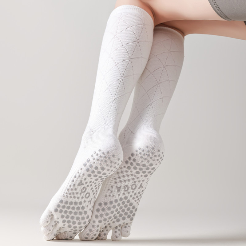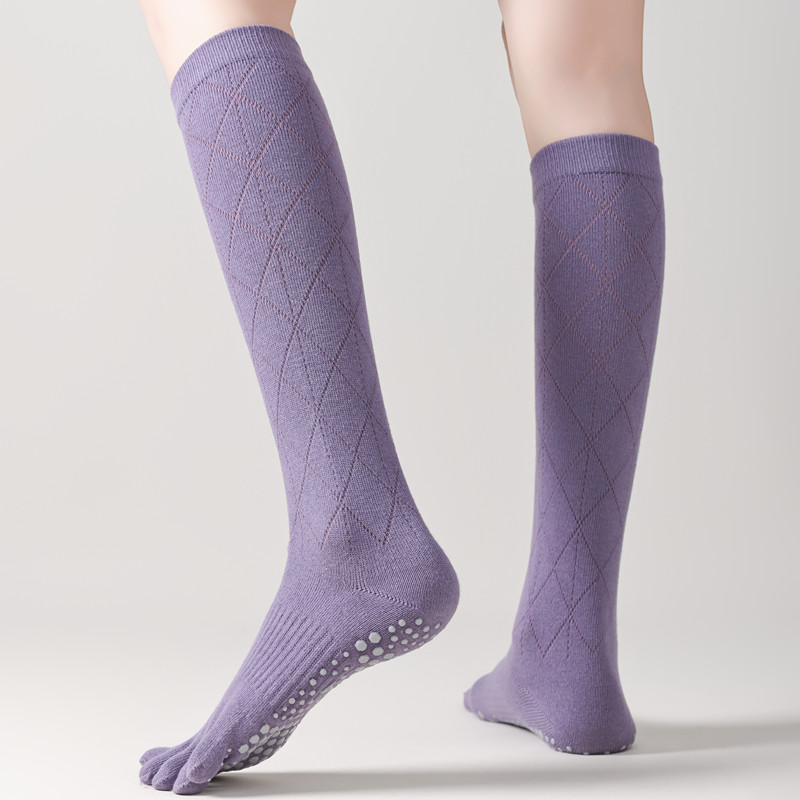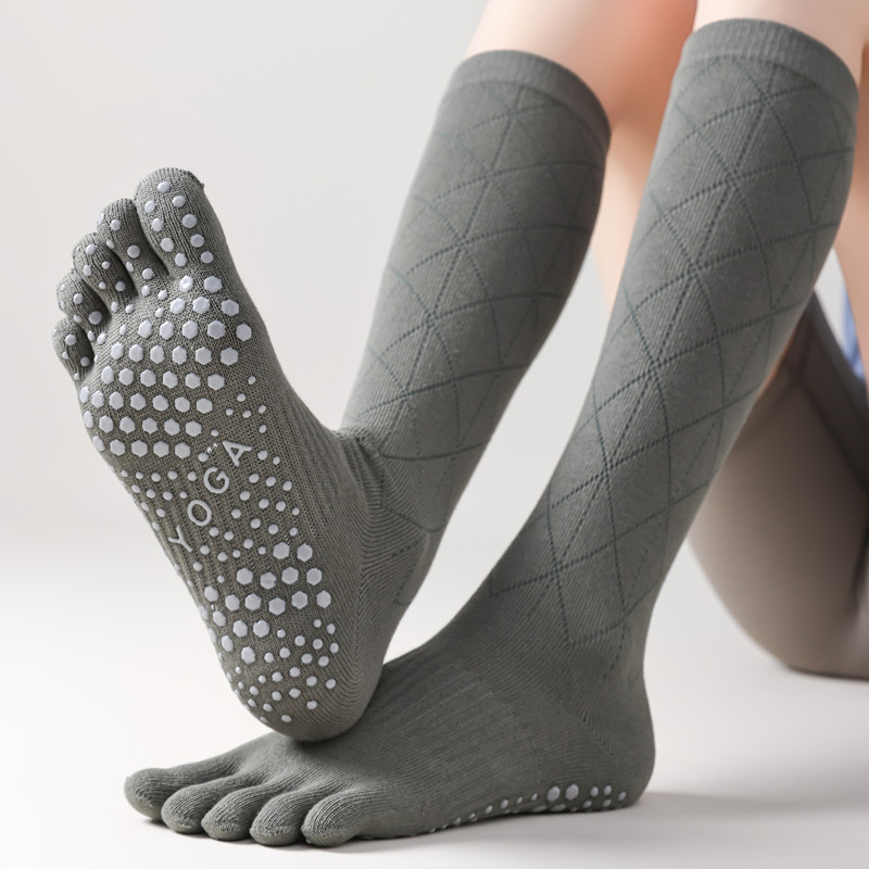 長筒五指瑜珈襪子專業防滑普拉提壓力小腿襪女薄款分趾運動地板襪