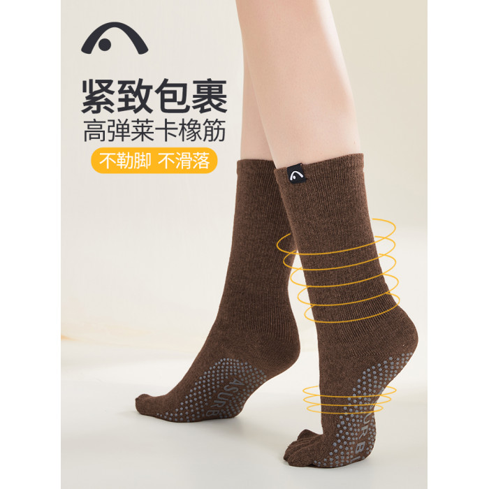 愛暇步秋冬新款瑜珈襪五指襪防滑專業女普拉提中筒保暖分趾健身襪