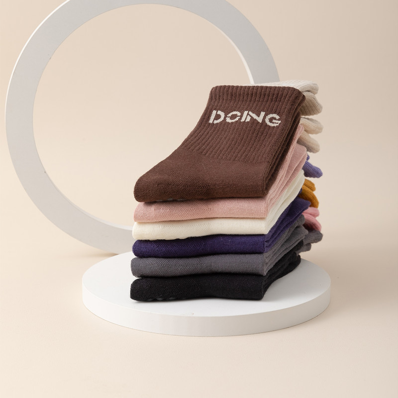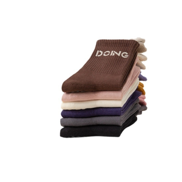 矽膠專業防滑運動針織襪瑜珈襪女拼色中筒字母襪健身普拉提高筒棉