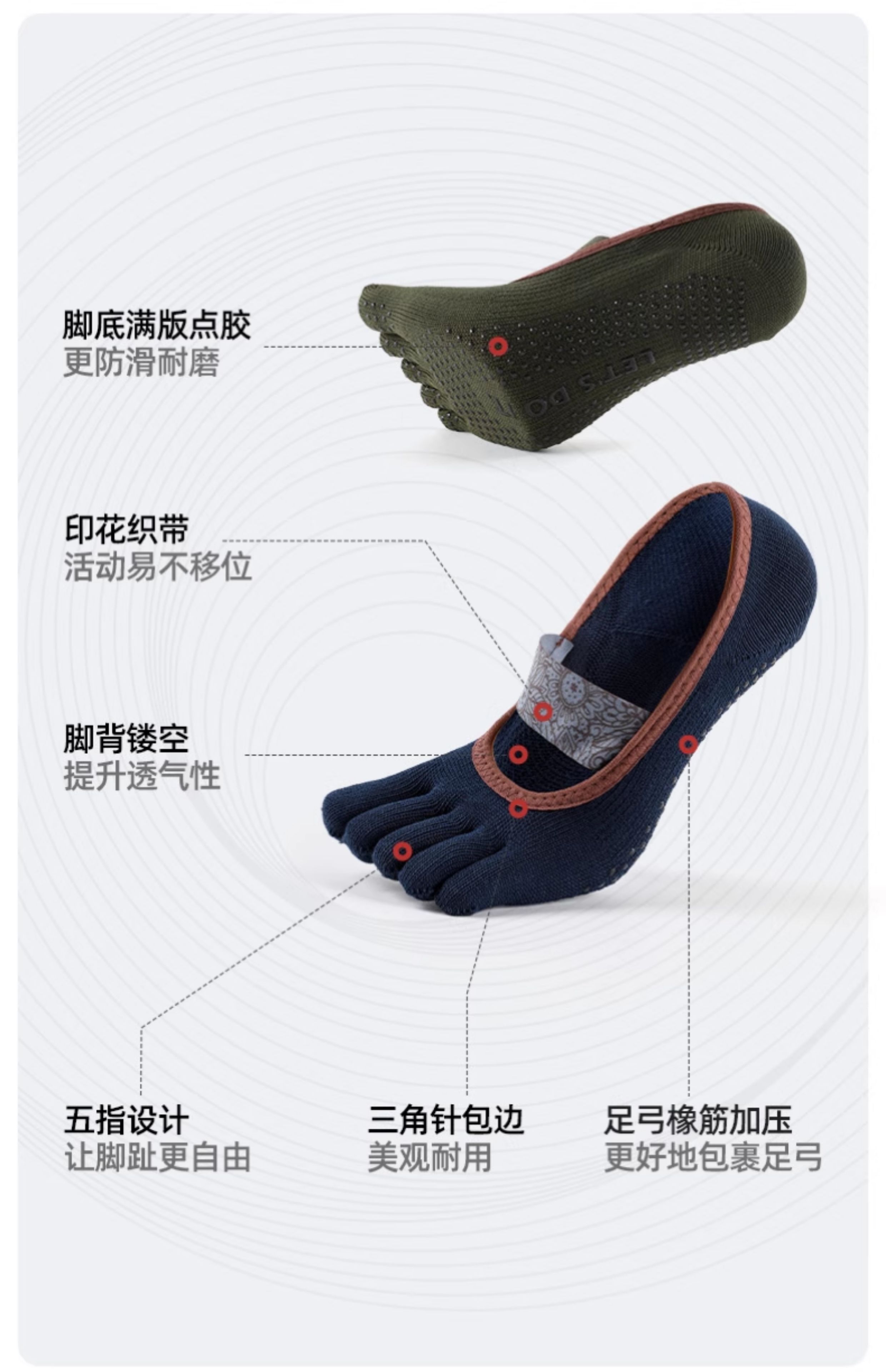 瑜珈襪子防滑專業女五指襪室內健身防滑襪地板襪成人普拉提襪子