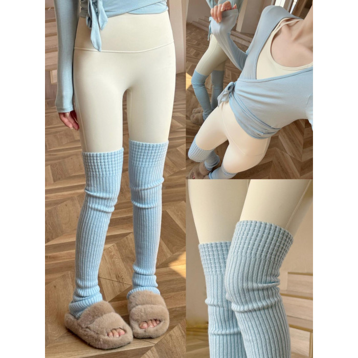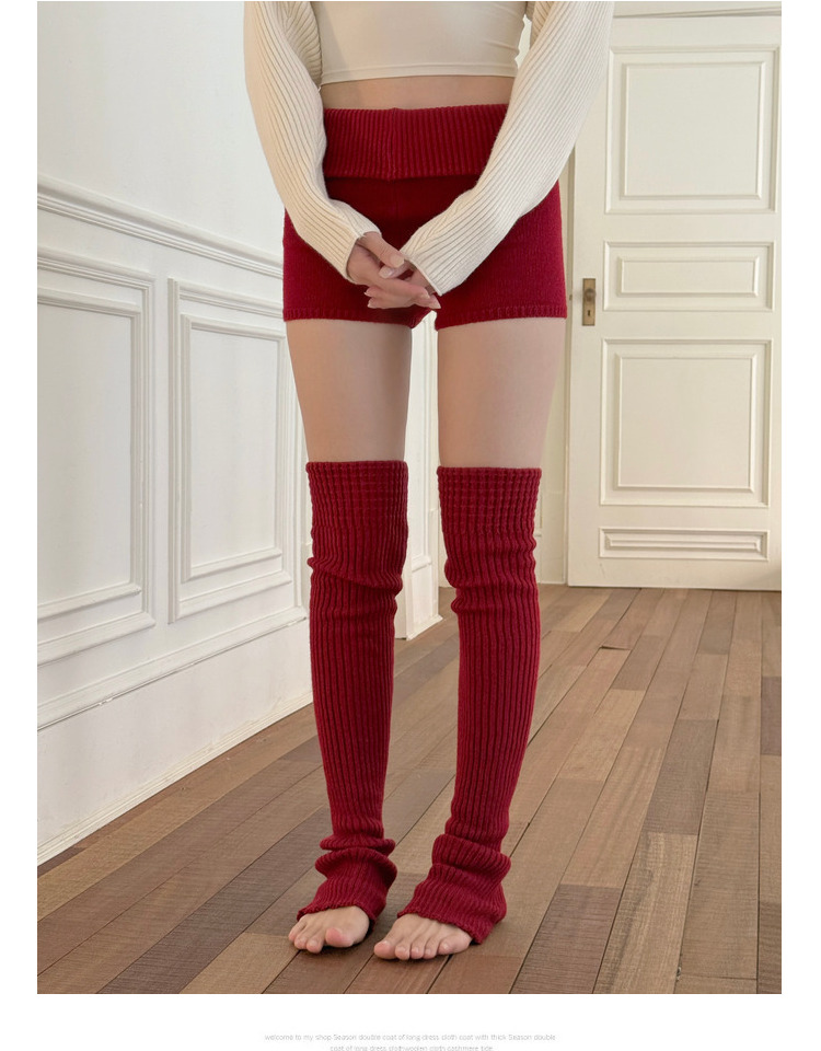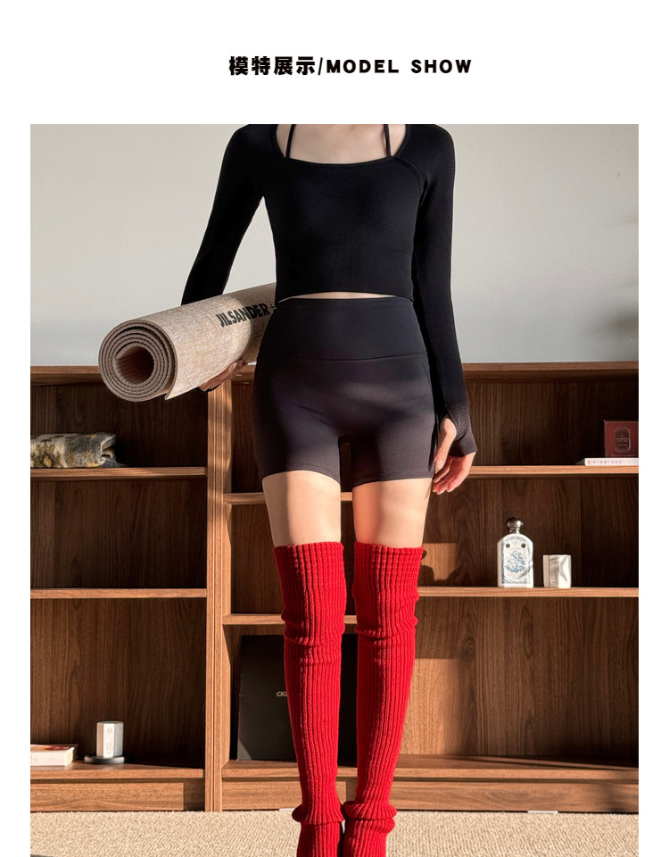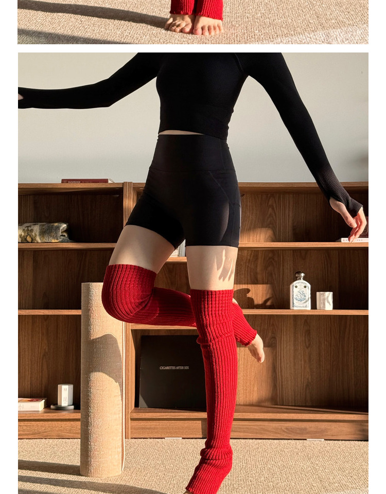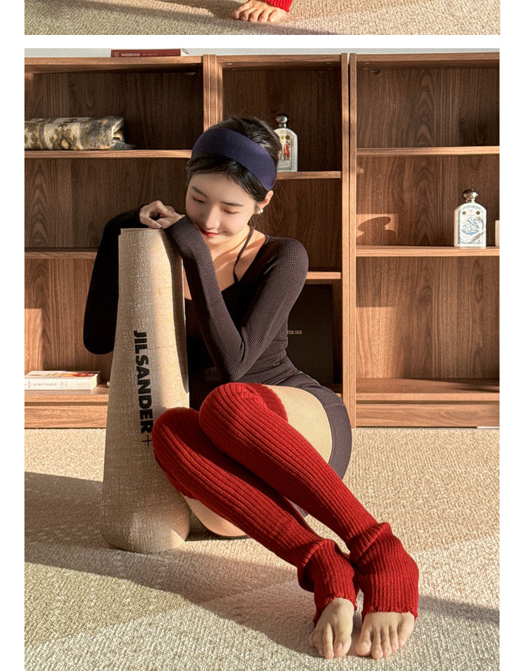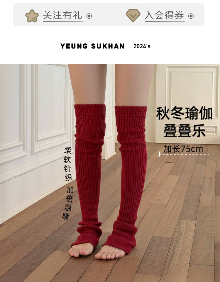 YSH/長筒襪套 紅色瑜珈襪過膝保暖堆堆襪秋冬曡穿普拉提踩腳腿套