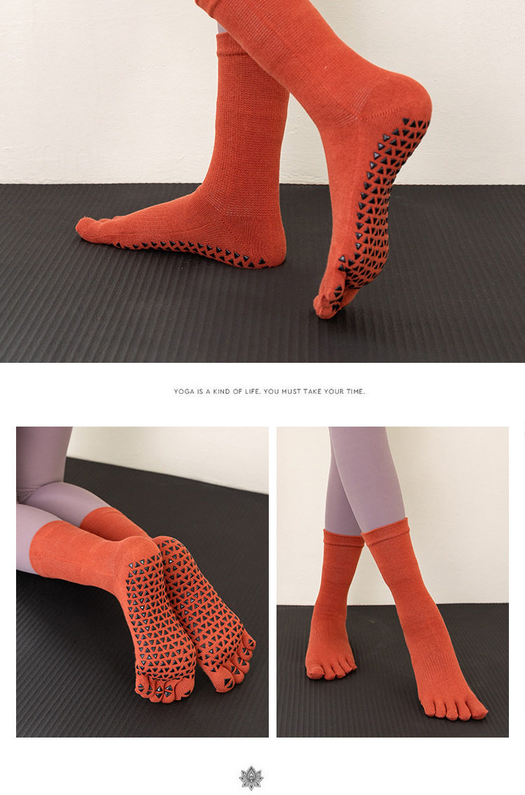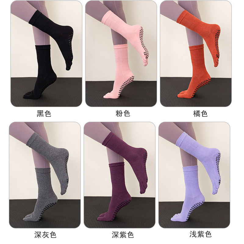 【宮長張】專業防滑五指襪運動普拉提瑜珈棉襪跳操健身中筒地板襪