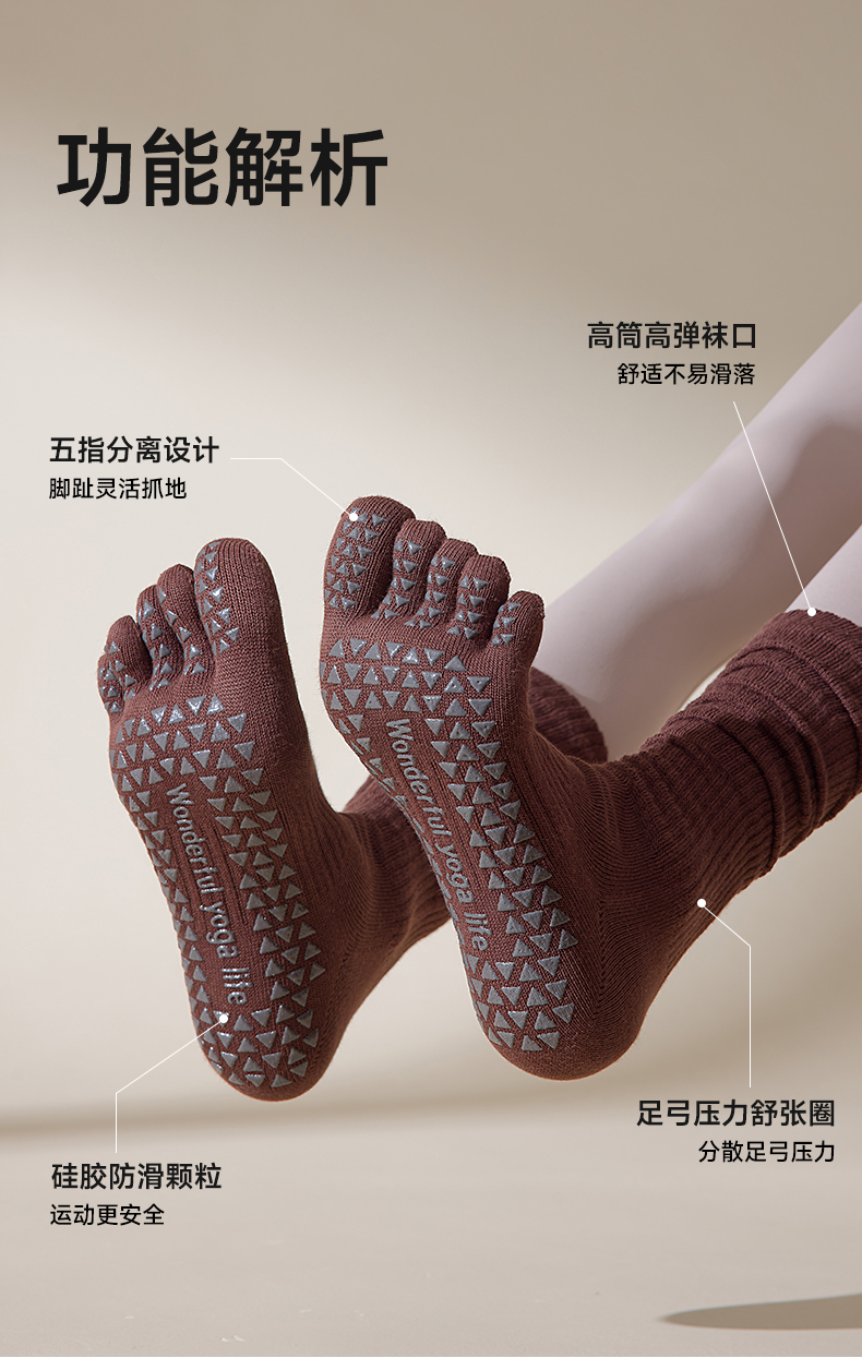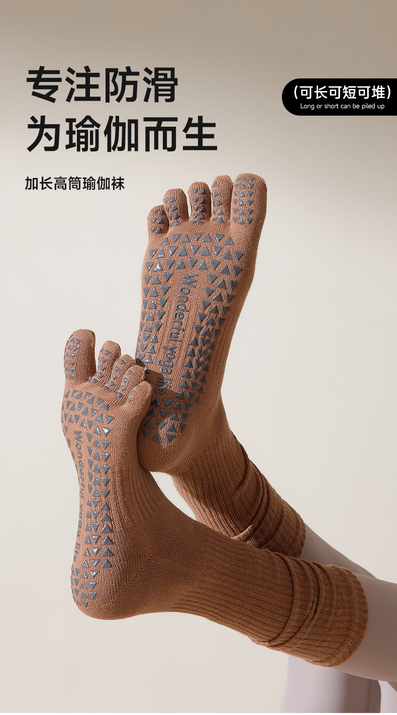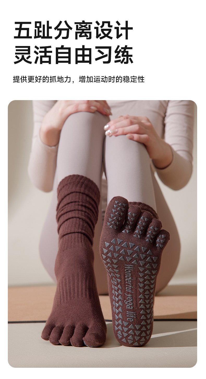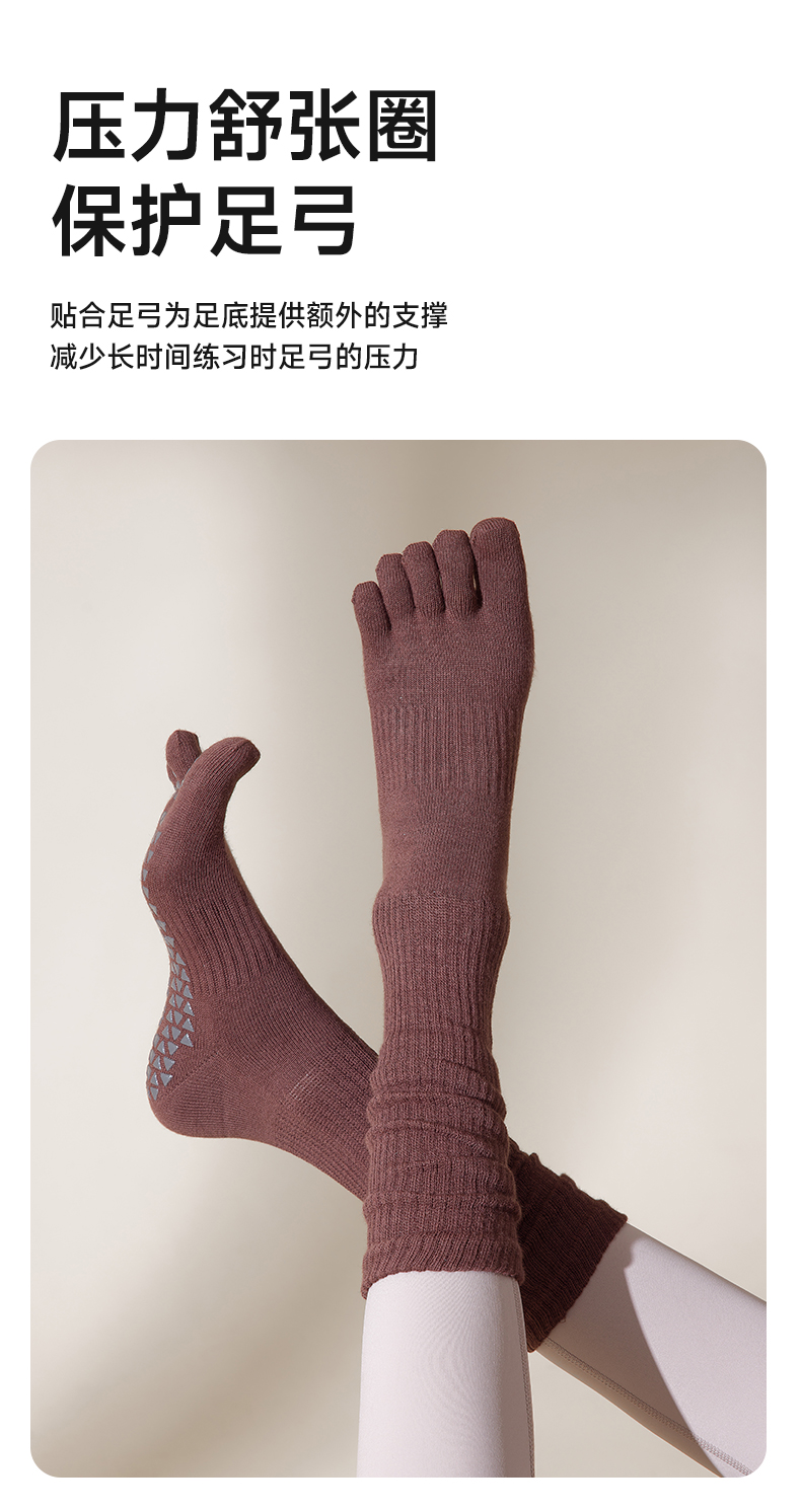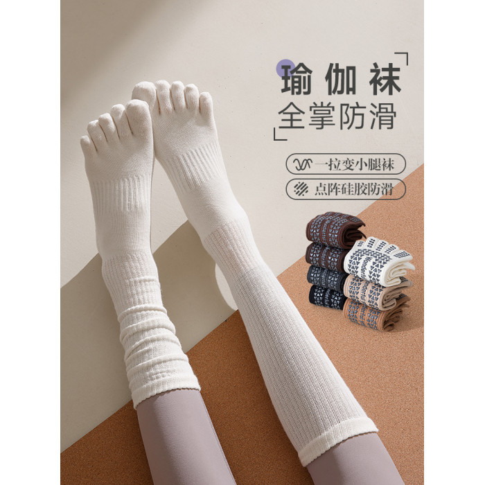 瑜珈襪五指防滑專業女士普拉提襪子秋冬加厚堆堆中筒小腿運健身動