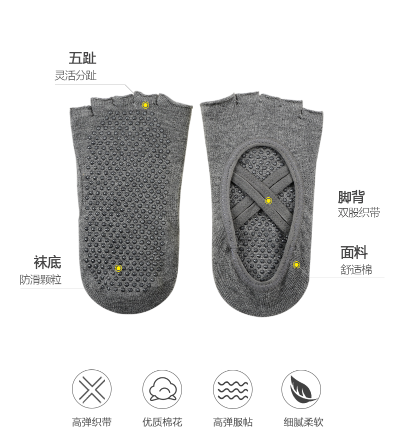 2雙裝 MEIKAN棉五指瑜珈襪健身地板襪室內女專業防滑蹦床舞蹈襪子