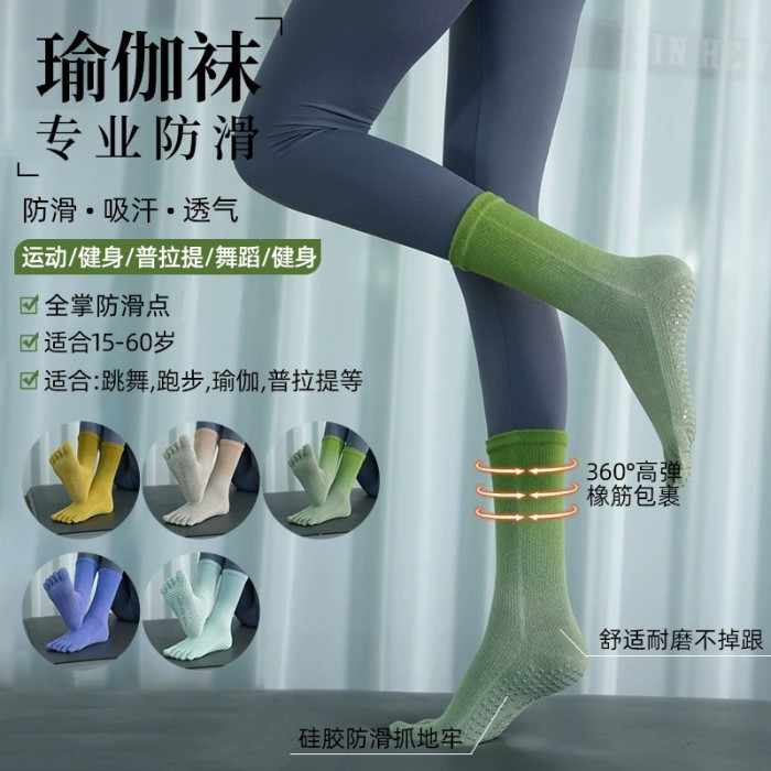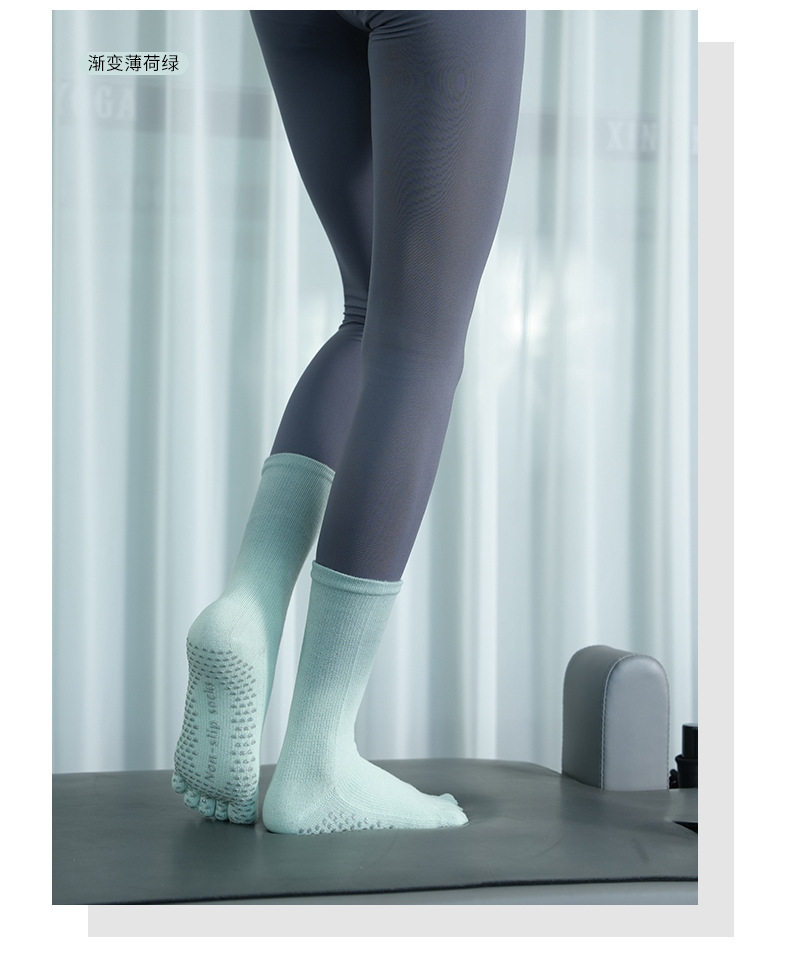 漸變瑜珈襪子防滑專業女五指襪健身防滑襪地板襪成人普拉提襪子
