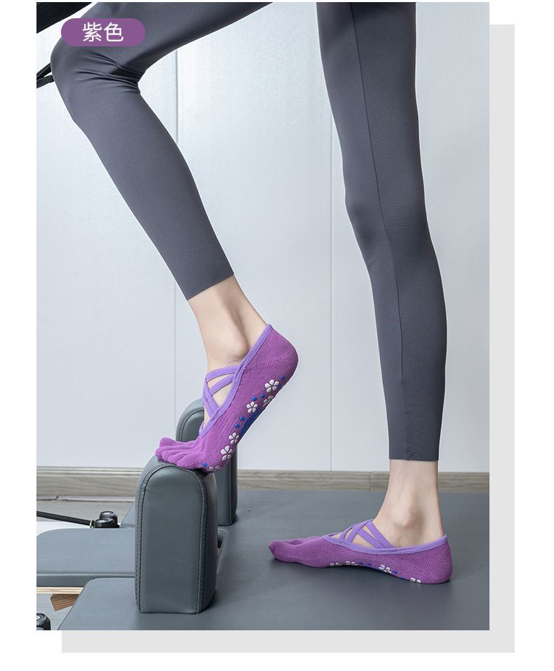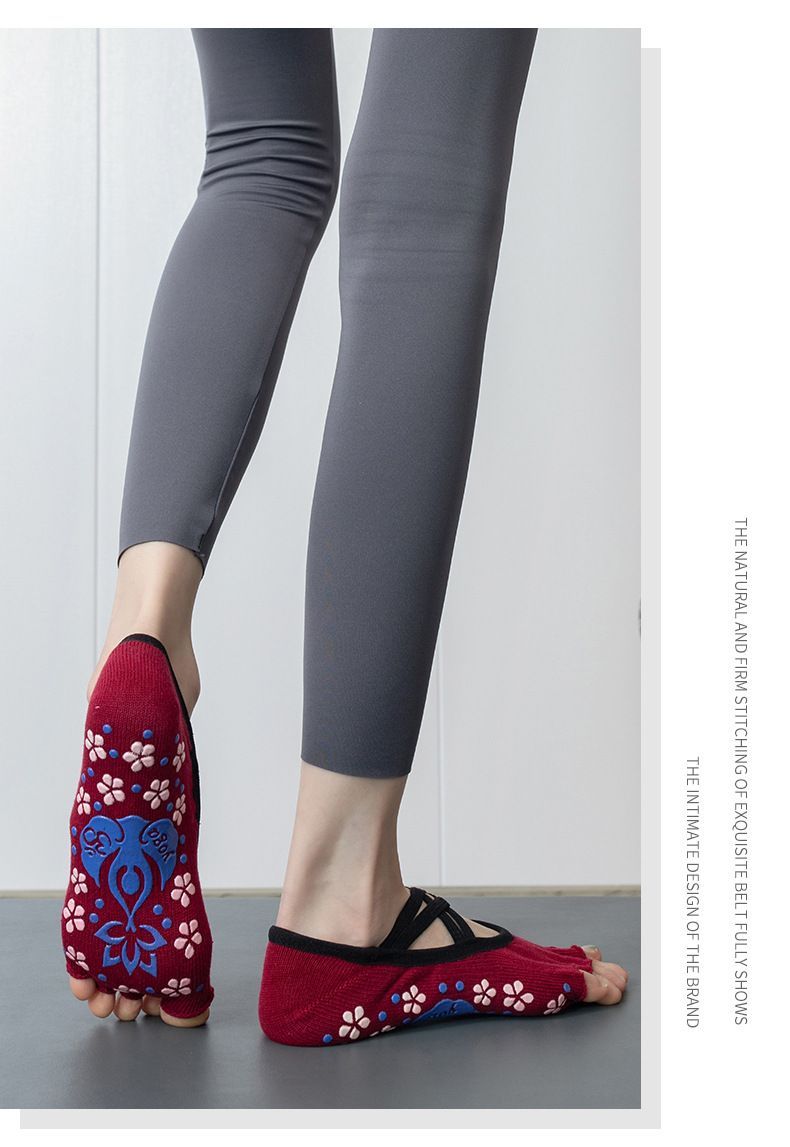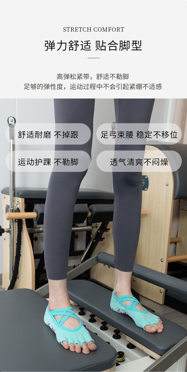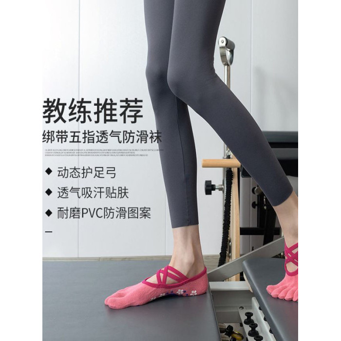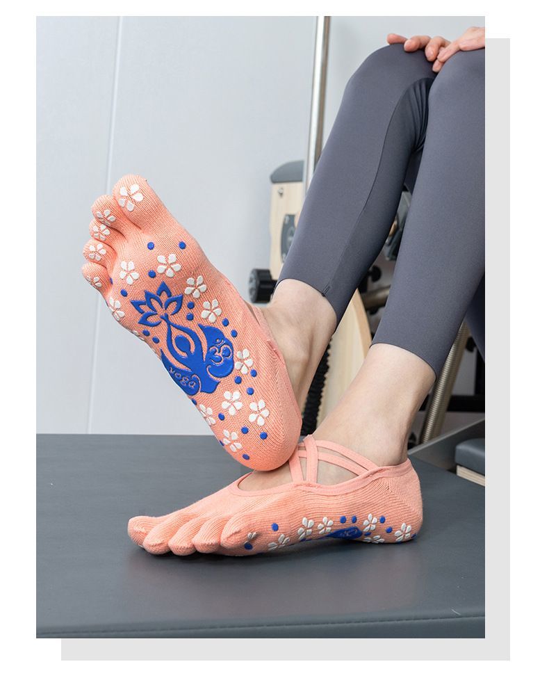 印花點膠防滑瑜珈襪子女普拉提防滑襪專業級五指襪瑜珈防滑舞蹈襪