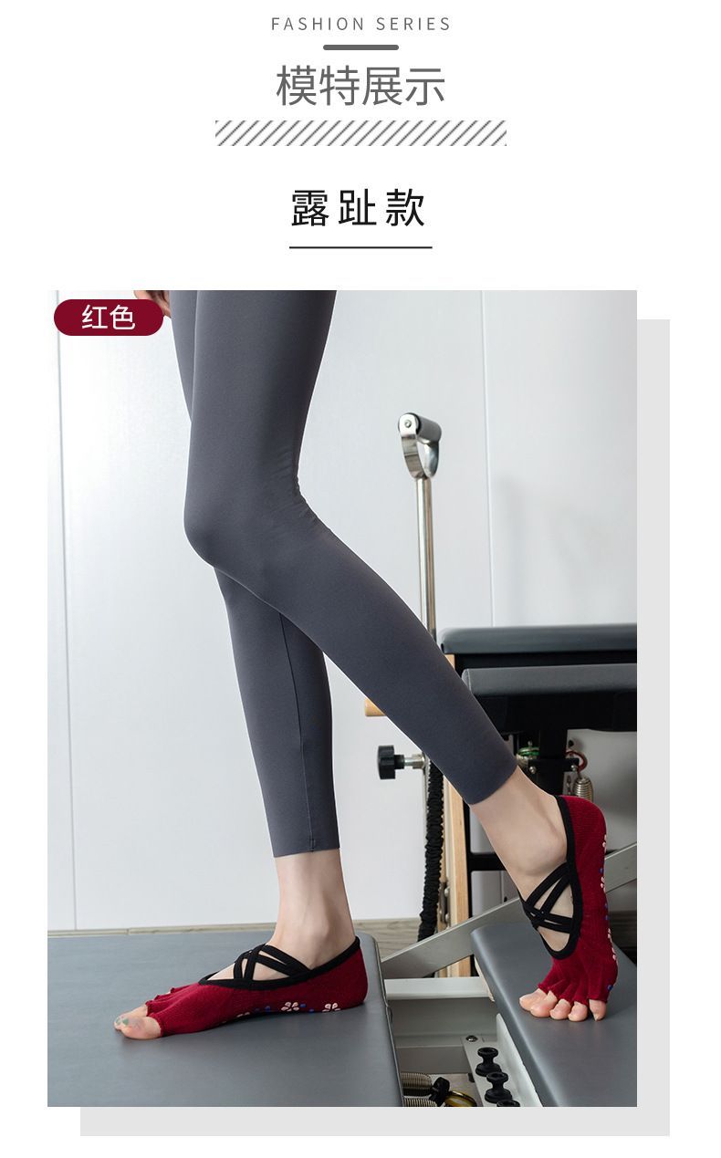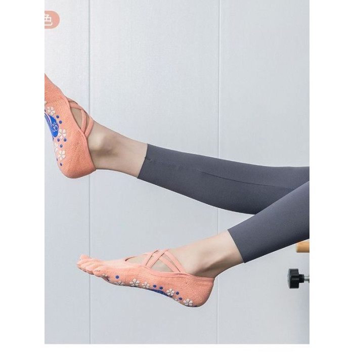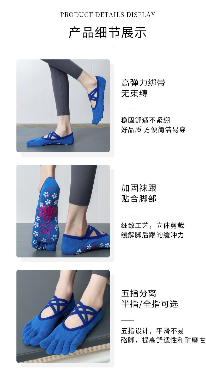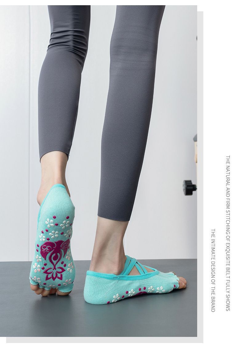 印花點膠防滑瑜珈襪子女普拉提防滑襪專業級五指襪瑜珈防滑舞蹈襪
