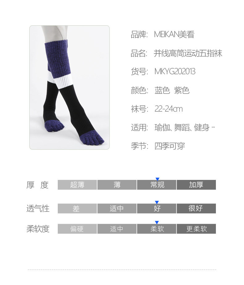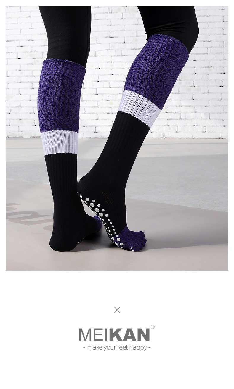 MEIKAN專業瑜珈長筒襪子女秋冬高筒過膝蓋五指襪防滑舞蹈運動長襪