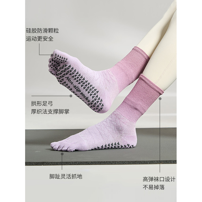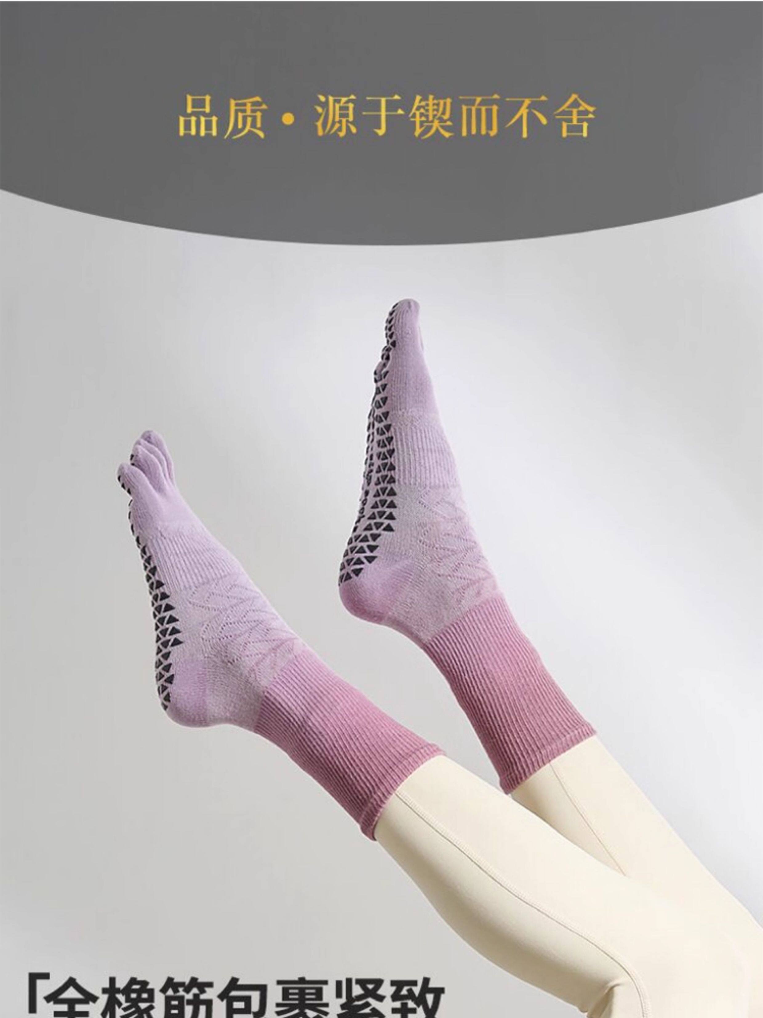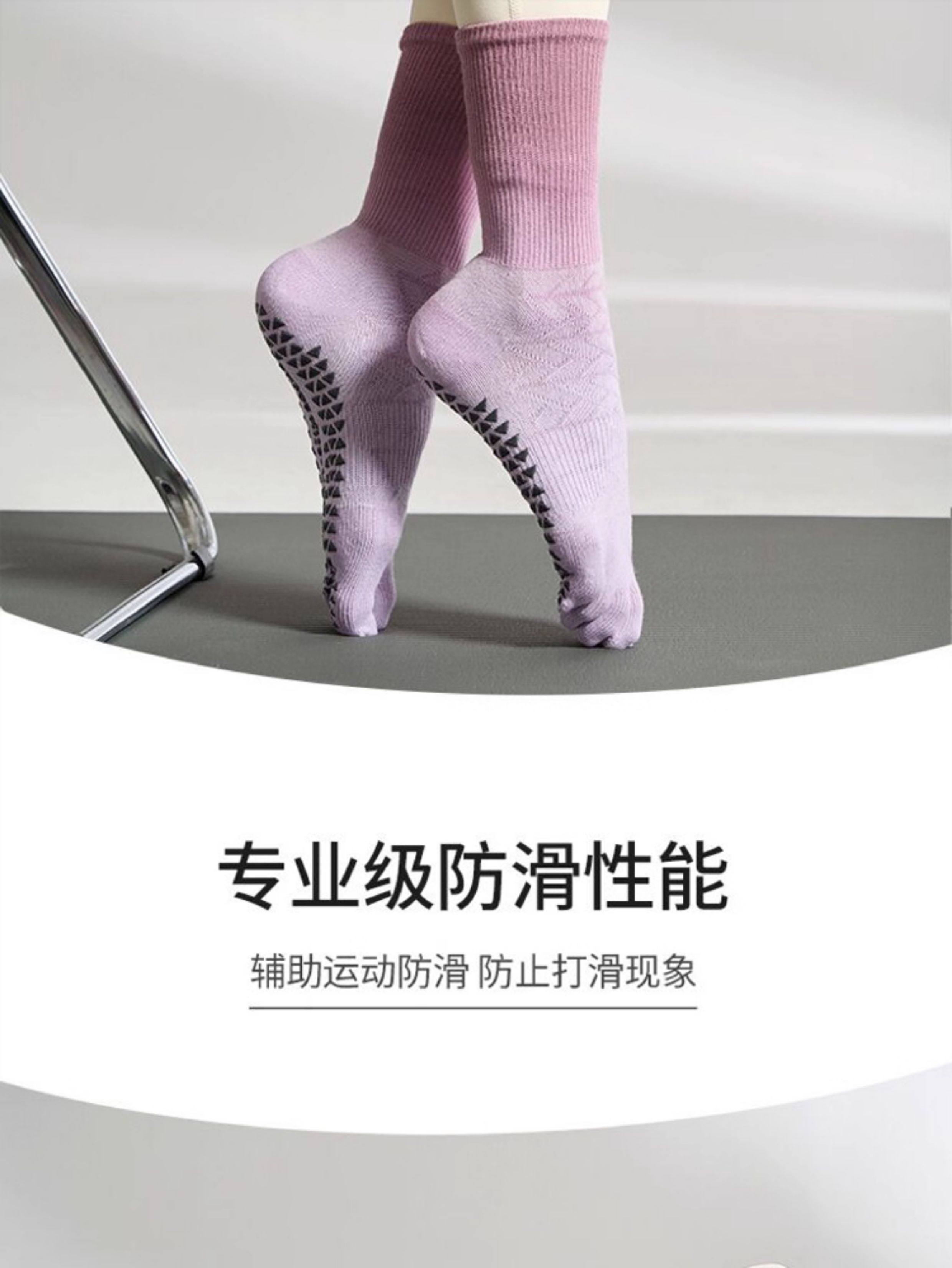 秋冬瑜珈襪專業五指襪防滑襪女普拉提襪子運動襪厚室內中筒健身襪