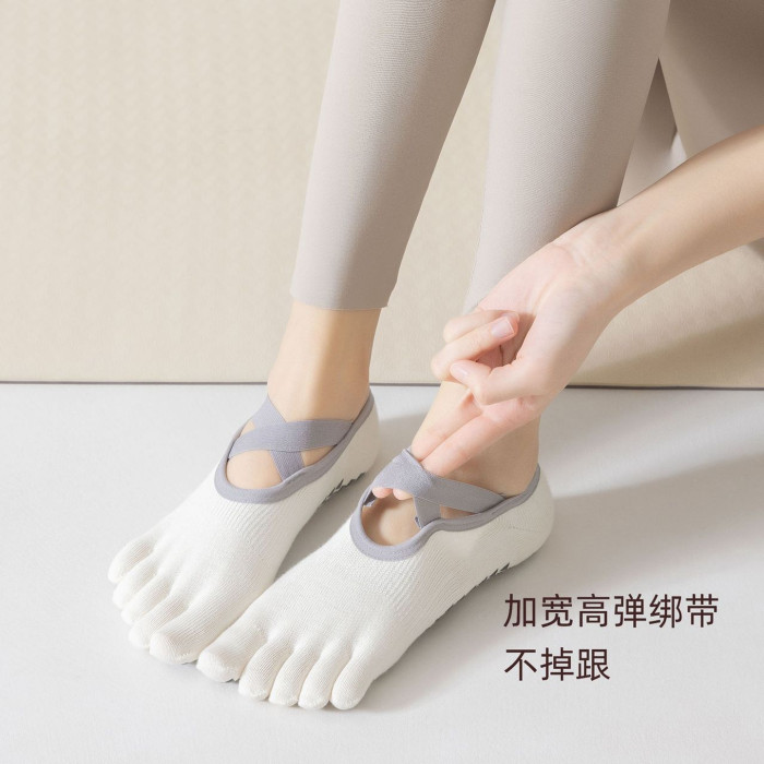 五指瑜珈襪防滑交叉綁帶襪普拉提運動健身分趾襪室內夏季