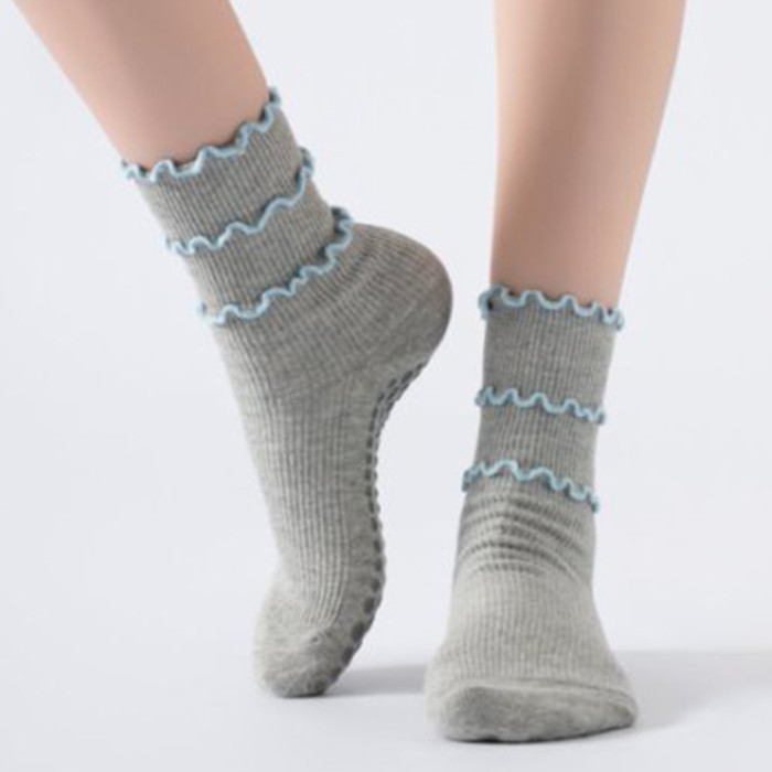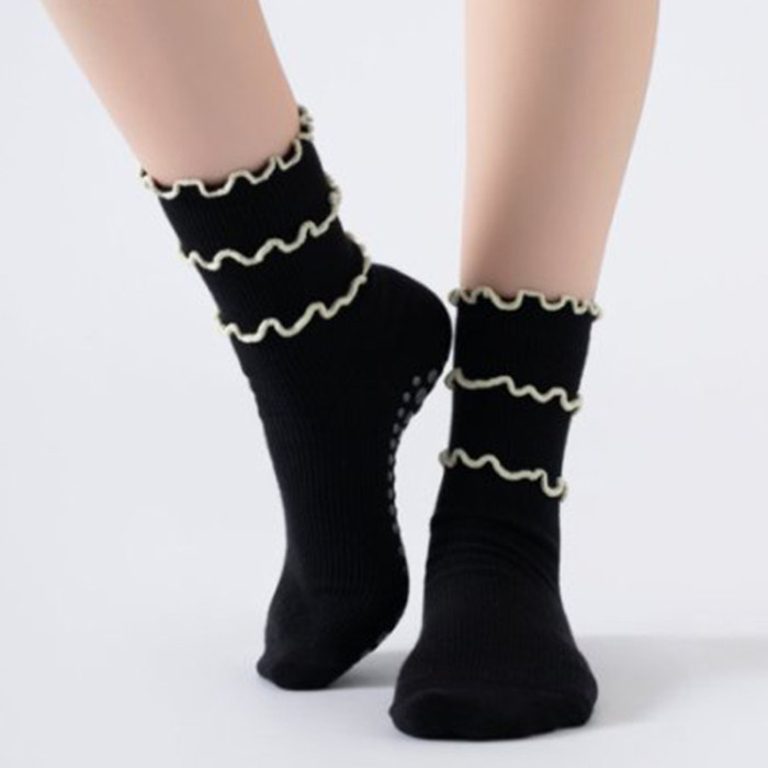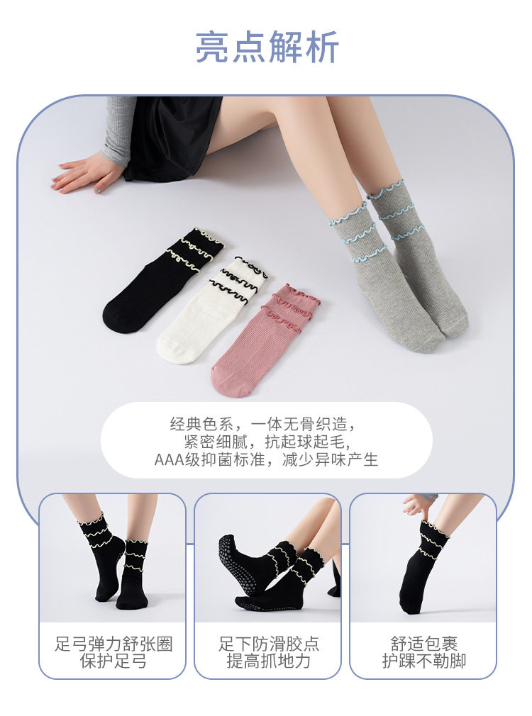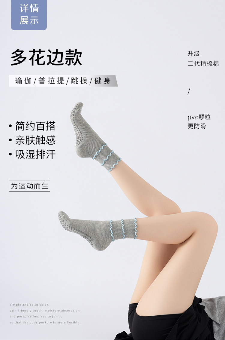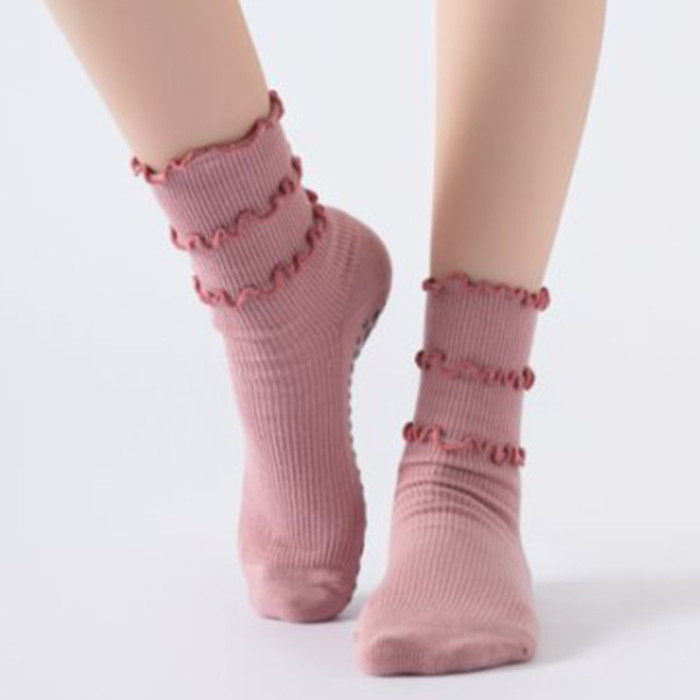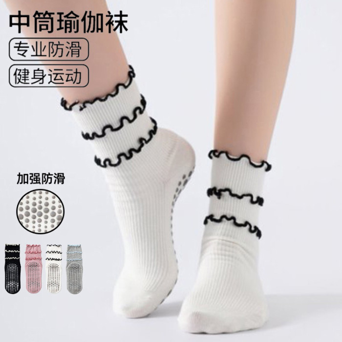 木耳邊瑜珈襪子防滑專業女中筒健身防滑襪地板襪成人普拉提襪子