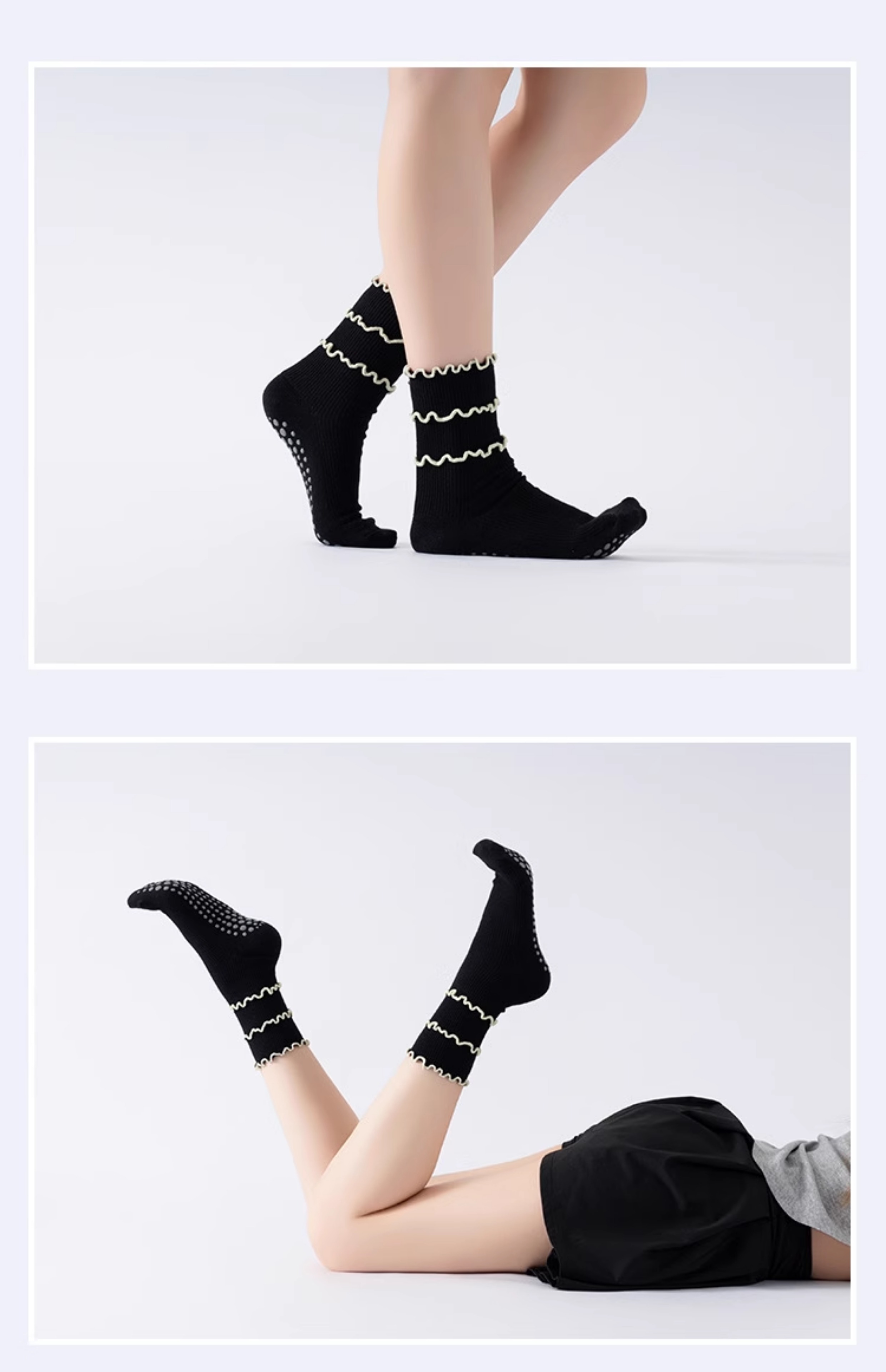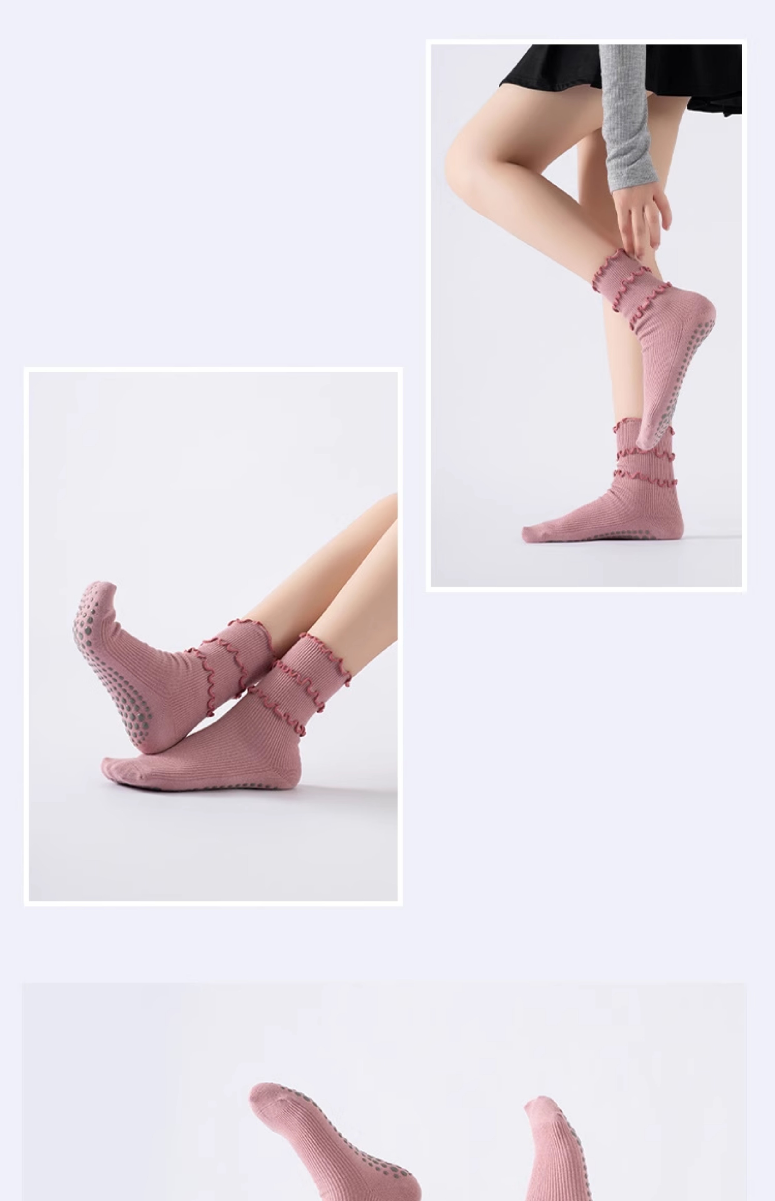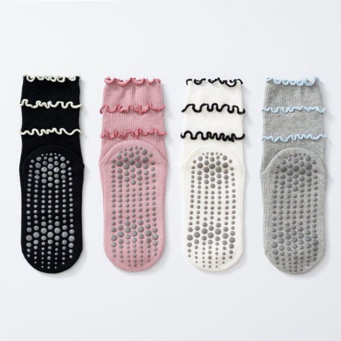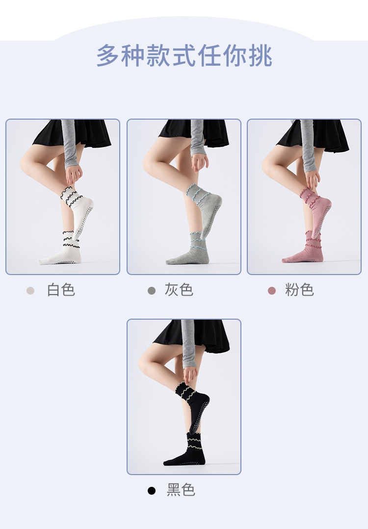 木耳邊瑜珈襪子防滑專業女中筒健身防滑襪地板襪成人普拉提襪子