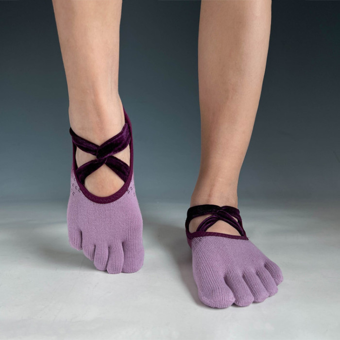 Yusox25年新款初學者蝴蝶帶五指襪防滑瑜珈襪絲絨帶女襪耐磨耐穿