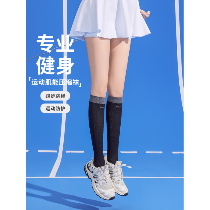小腿壓力襪運動徒步跳繩跑步登山瑜珈球類襪子女中筒襪防滑長筒襪