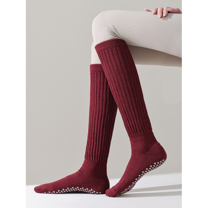 新款瑜珈襪防滑專業女秋冬保暖腿中筒舞蹈普拉提襪子室內繩跳長襪