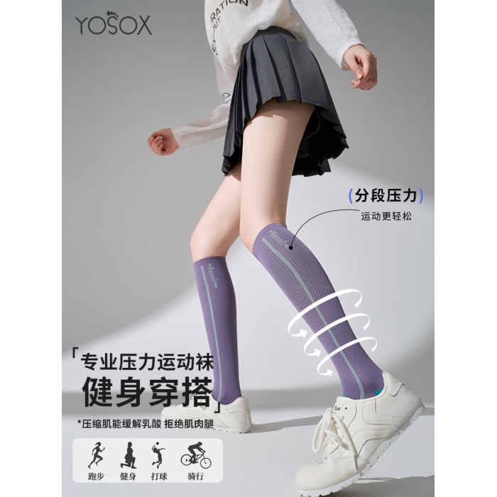 秋冬運動壓力襪徒步登山襪騎行襪女士小腿襪羽毛球襪馬拉松跑步襪