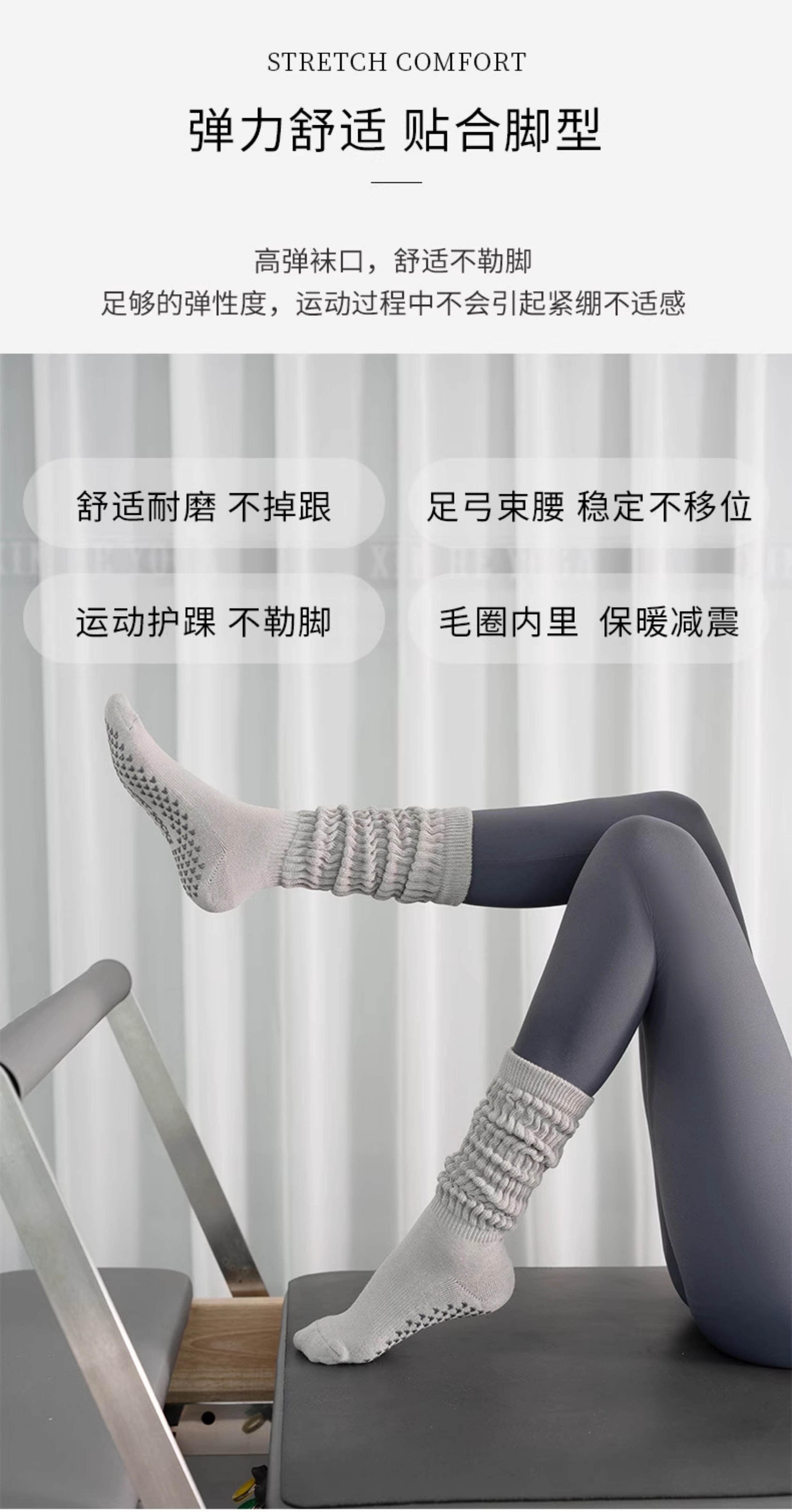 瑜珈襪子防滑專業女長筒室內健身地板襪成人防滑襪小腿普拉提襪子