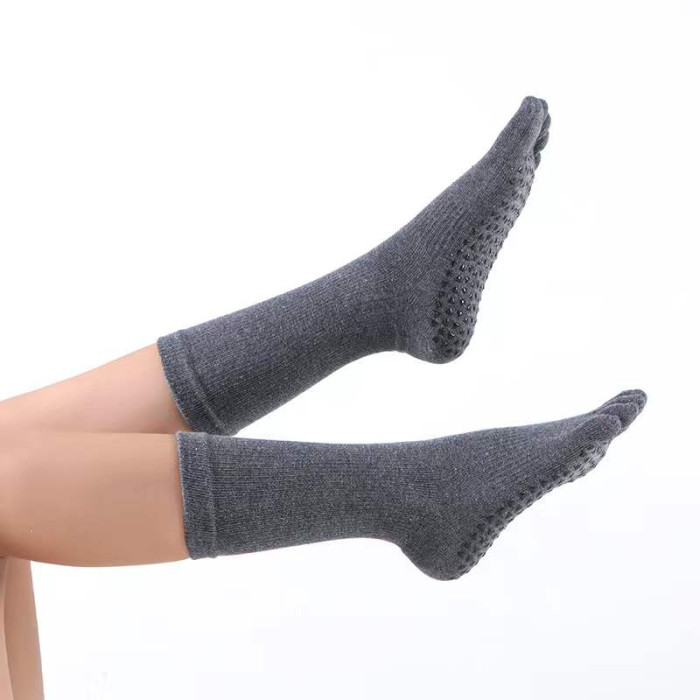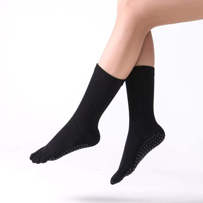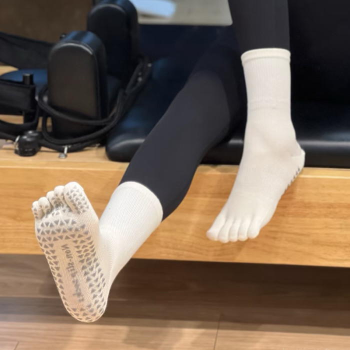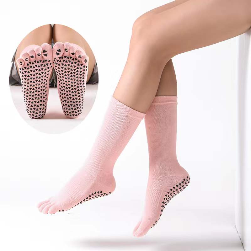 瑜珈中筒襪子防滑專業女普拉提秋冬專用棉襪健身運動五指室內跳舞