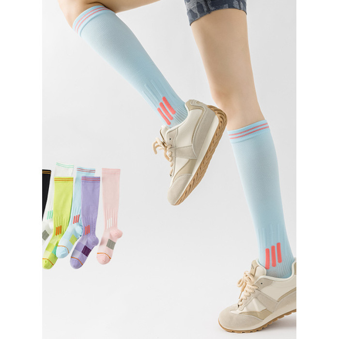 VALINGNSL專業運動襪子女小腿襪多巴胺壓縮長筒健身跑步高筒襪子