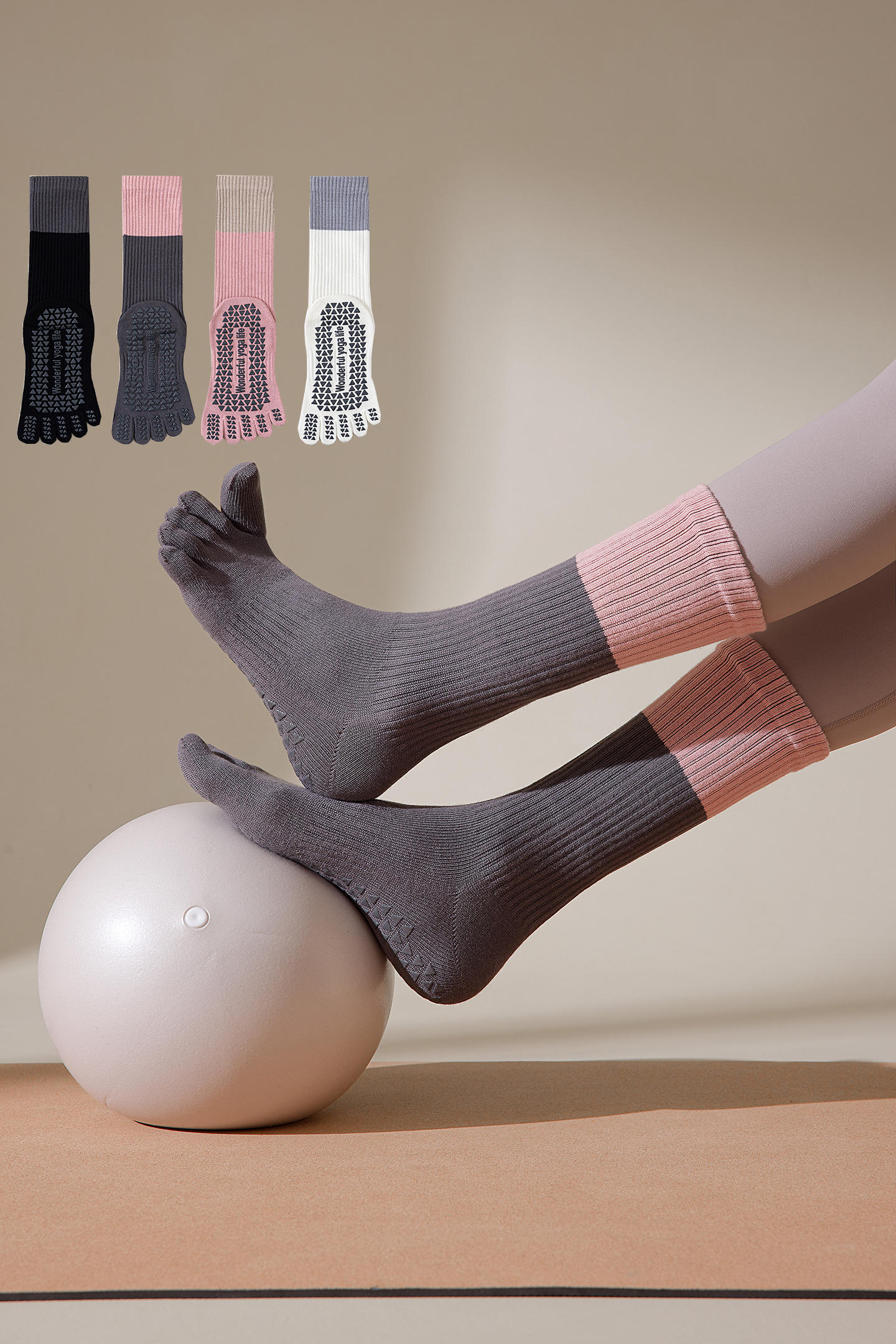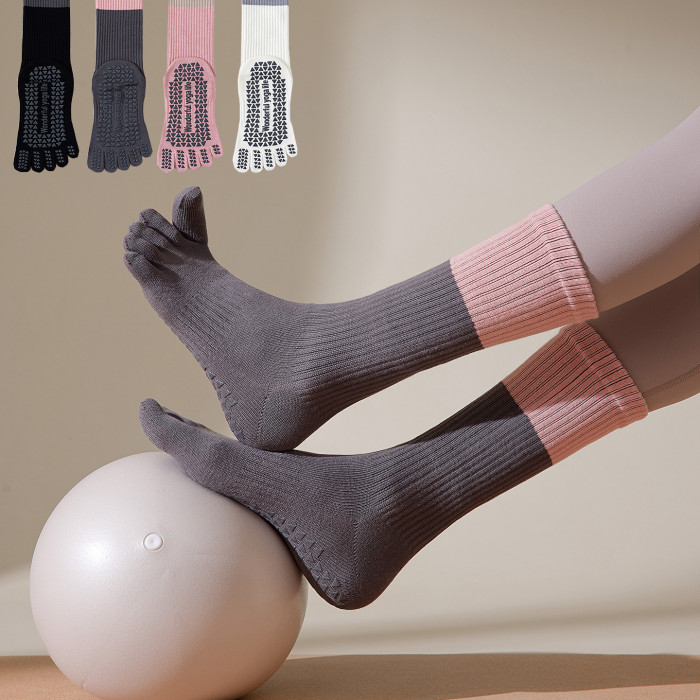 五指襪子女中筒純棉專業普拉提襪子防臭防腳氣舞蹈健身分趾長筒襪